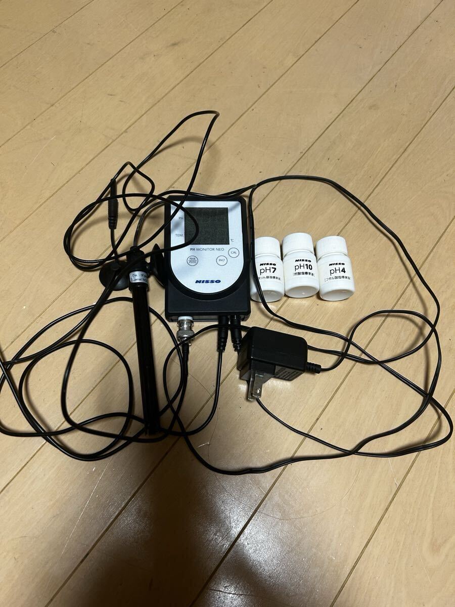 ニッソー PHモニターNEO 中古です、使用期間もありコードも新品の様にしなやかではなく硬くなっていますコントロール用の薬剤も開封使用しています。