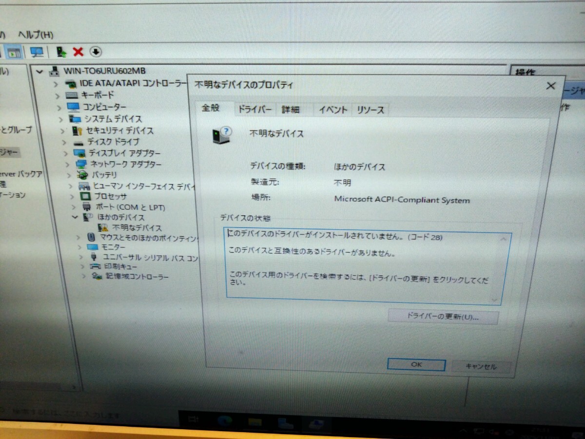 デバイスマネージャーでACPIのデバイスが認識できてません。(写真参照)
