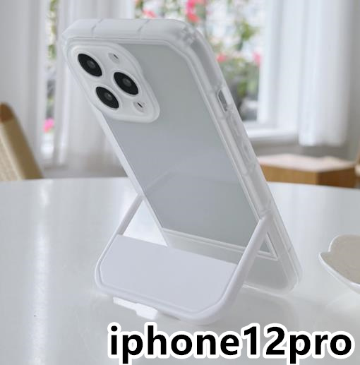 iphone12proケース カーバー スタンド付き 半透明 お洒落 韓国 軽量 ケース 耐衝撃 高品質 ホワイト