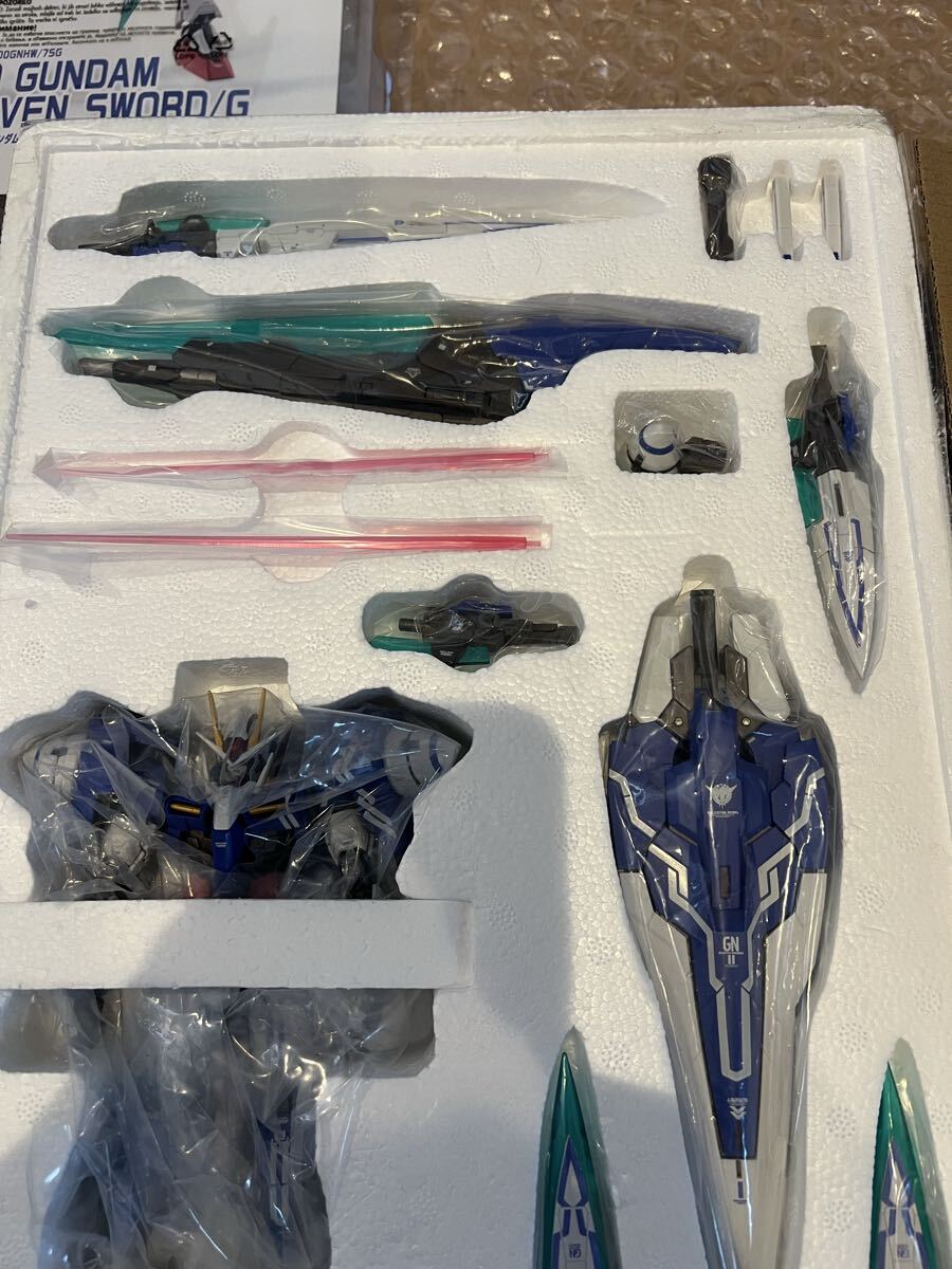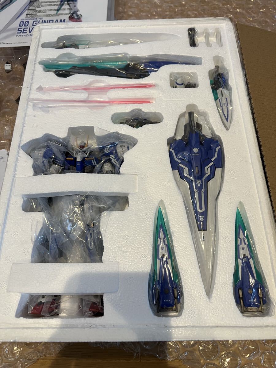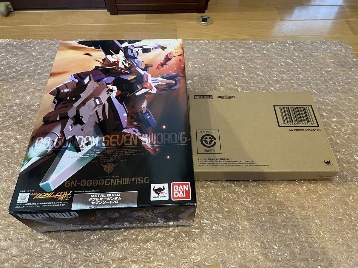 バンダイスピリッツ「METAL BUILD ダブルオーガンダムセブンソード/G」と「魂ウェブ商店限定 METAL BUILD GNソードIIブラスター」のセット、いずれも【中古】です。