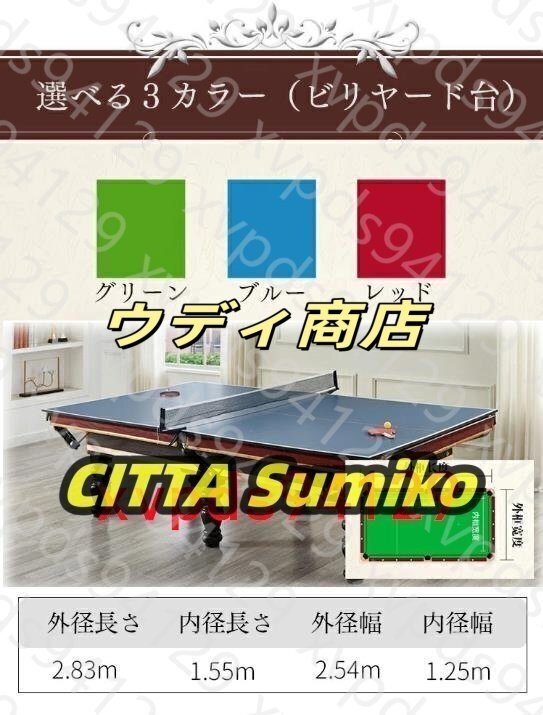 商品説明 商品名新製品2in1 マルチゲームテーブル ビリヤード+卓球 8フィート ビリヤードテーブル 卓球テーブル 試合用 家庭用 店用 カラー組み合わせ自由内容量ビリヤードボール 57mm1セット、キュースティック (無垢材) 3個、チョーク12個、専用手袋2個 手がかりの 2 個、