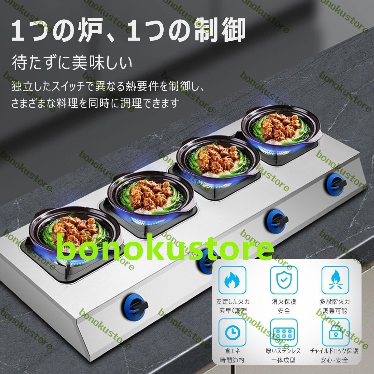 土鍋天然ガスストーブ 業務用 2/3/4バーナー 多穴マルチストー 消火保護装置 天然ガス液化ガスストーブ 低圧 高火力 土鍋ストーブ バーナーガスストーブ 家庭用ガス炊飯器 お手入れ簡単 ガステーブル 2列4口コンロ 液化ガス