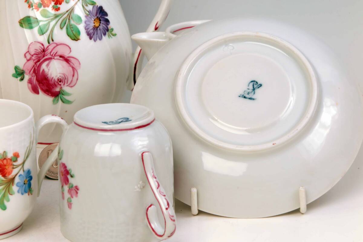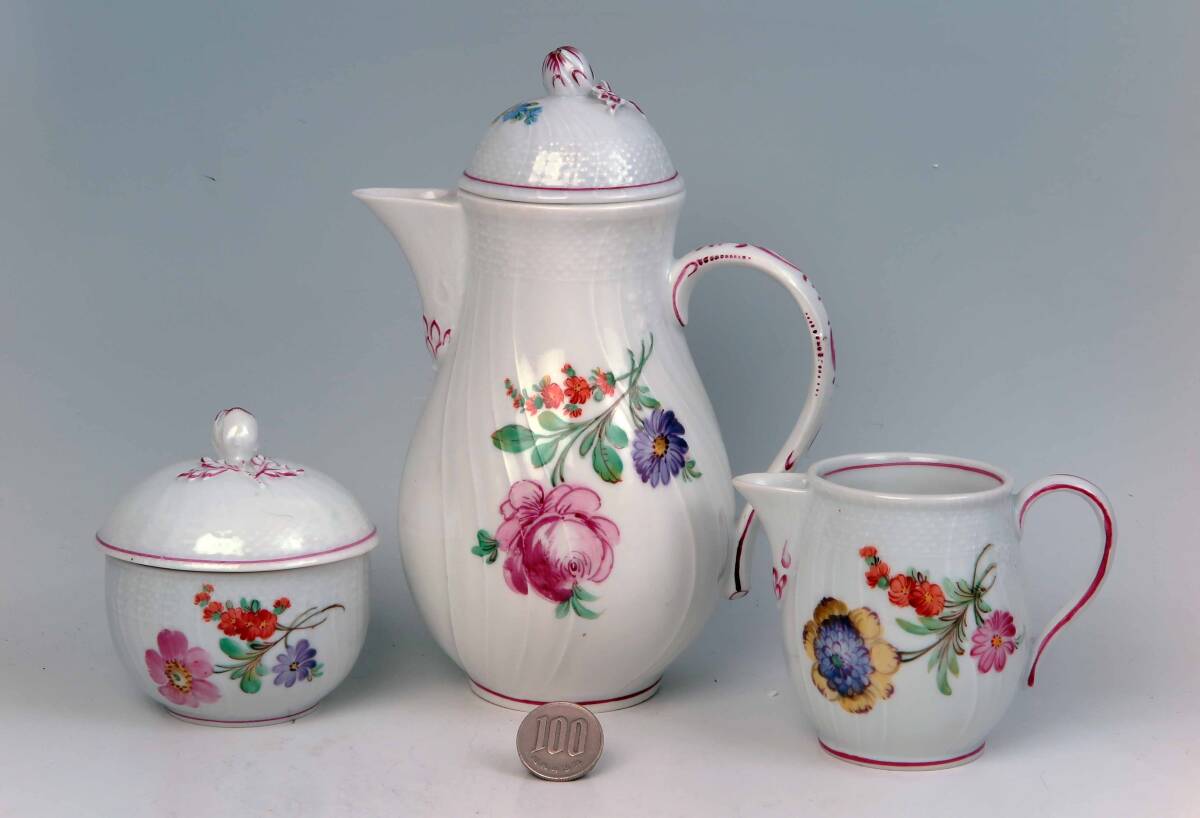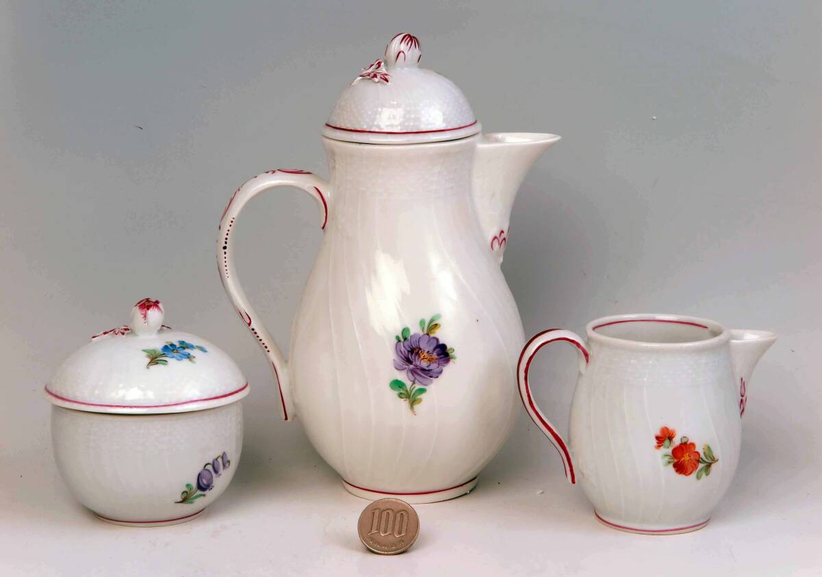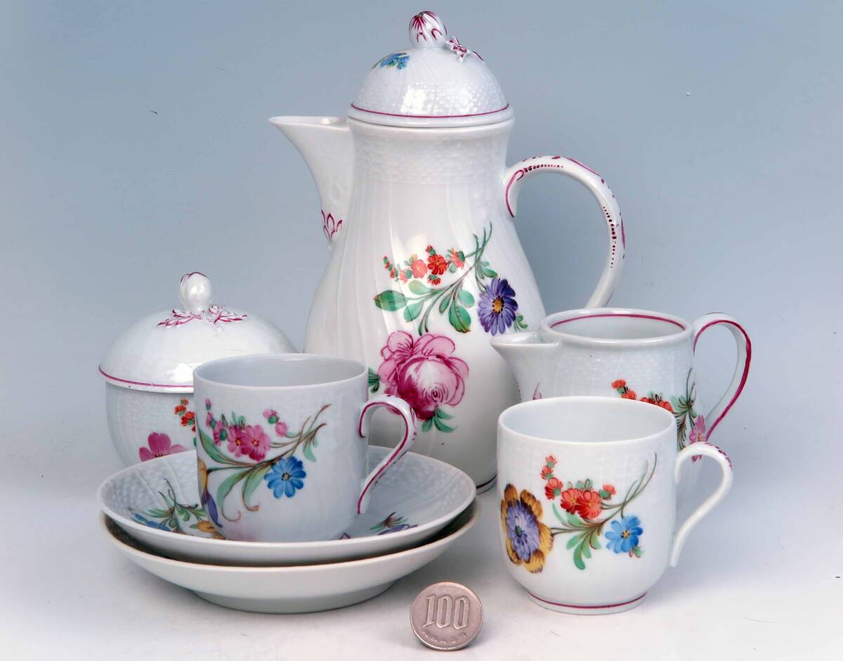 ブーケ花色絵付けの製品です。絶妙な高貴さを醸し出すこの色合いの感性はマイセン・ドレスデンの得意とする処で、ヨーロッパ的な完成された美しさを成しています。