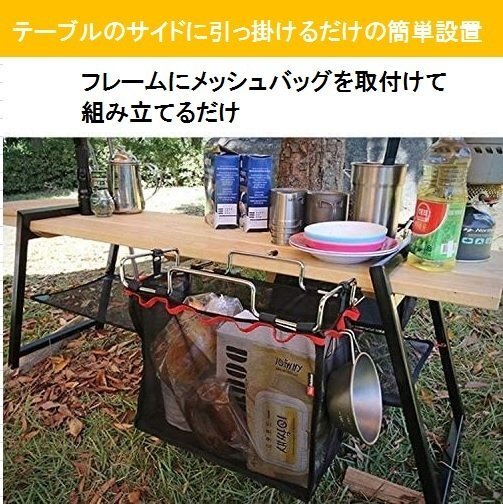 | テーブルサイドラック 【Mサイズ】 アウトドア バーベキュー テーブル メッシュ 食器入れ ゴミ箱 テーブルホルダー LB-161 | |||||||||||