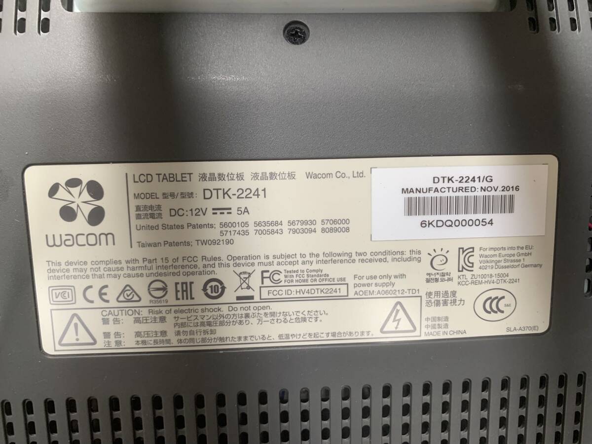 J ★WACOM/ワコム 21.5型 LCD TABLET ワイド液晶ペンタブレット DTK-2241 ペン付, ACアダプタ付, 簡易動作確認のみ★