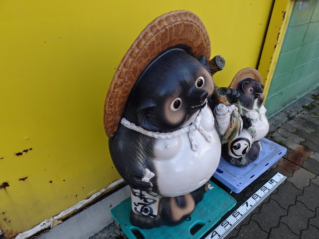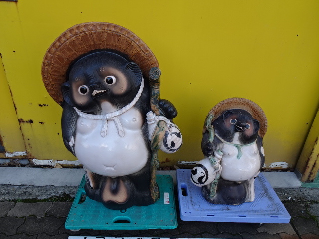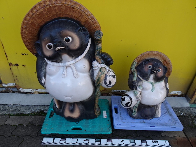 | 商品説明 | ◆L-85/信楽焼 たぬき 大型サイズ大小2点まとめて 親子 狸 置物 オブジェ 商売繁盛 縁起物 ディスプレイ 昭和レトロ 高さ100cm 60cm ◆鼻にカケあり ◇高さ:100cmと60cm ◇引き取り限定 ◆引き取り場所:兵庫県 尼崎市となります。 ◆梱包サイズになりますが、集荷ドライバーにより異なる場合が御座います。 ◇簡単決済での御入金の落札者様は、必ず簡単決済で入金しましたと御連絡を宜しくお願い致します。 ◇落札者及び、取り置き希望の落札者は様お届け先情報の記載を必ずお願い致します。 ◆取り置き希望の落札者様も、かんたん決済の期限内の決済をお願い致します。 ◆かんたん決済の期限が過ぎた場合は、振込口座のお知らせを致します。