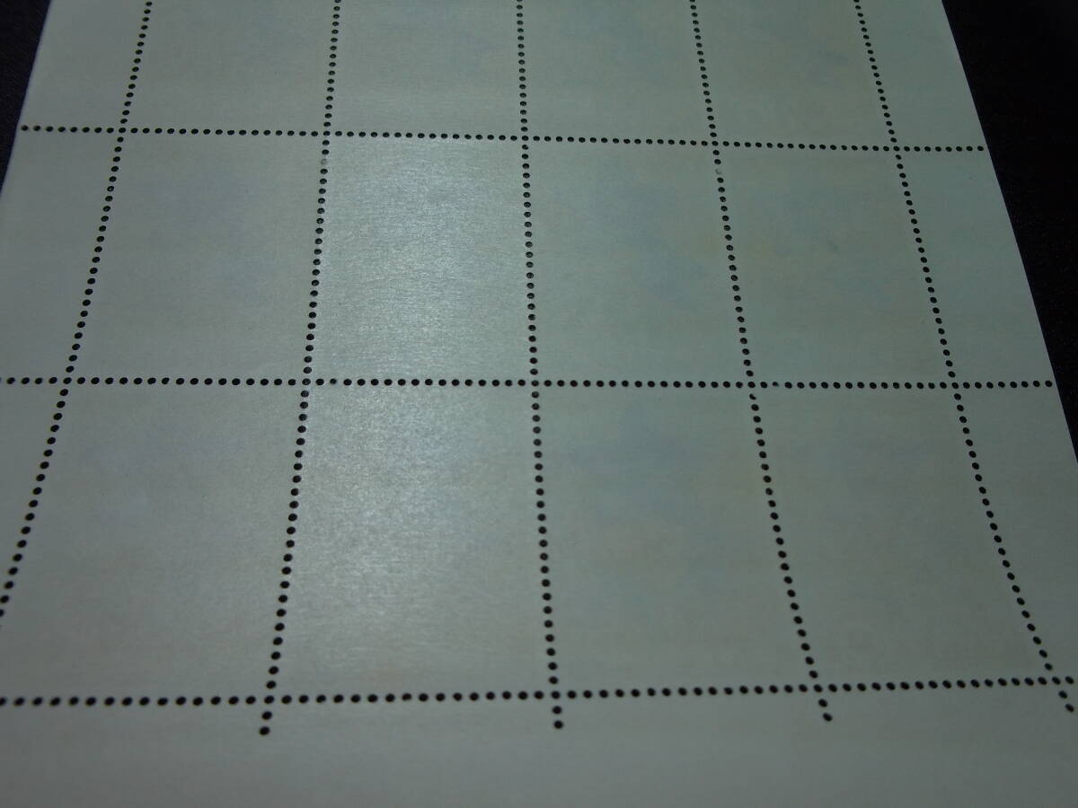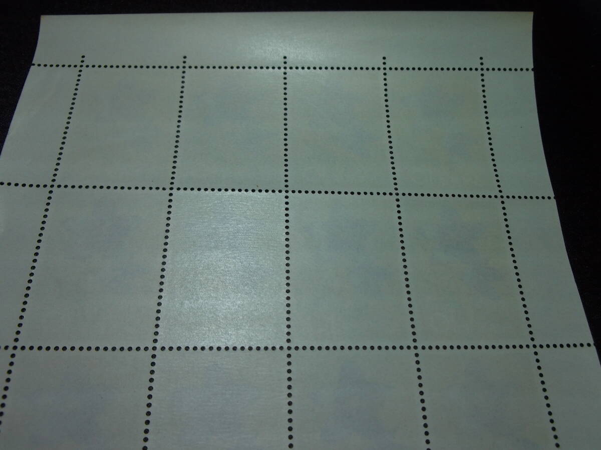 この頃の切手は丸まりやすいので目打ち離れ、折れをおこしやすいです。また、この頃の切手はグラビア印刷の特徴としてヒビ
