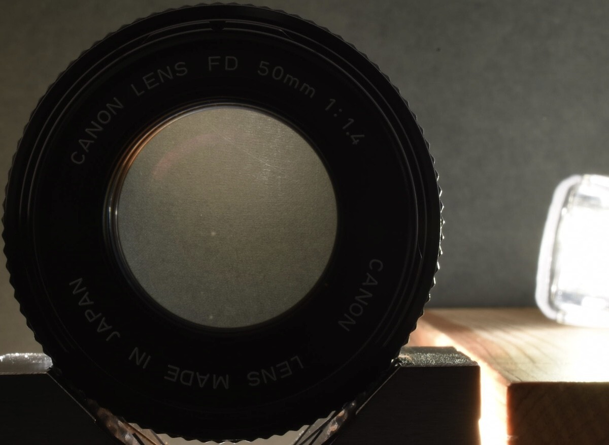 光学系:強烈なLED逆光ではオールドレンズにありがちな白い点が見られます。
