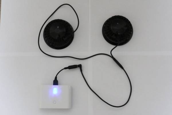 空調服のファンをモバイルバッテリーで使用できるケーブルです。