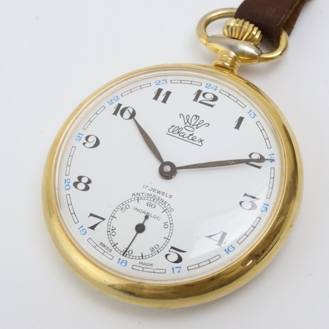 | 2510-726 HW ワテックス 手巻き式 懐中時計 Watex 17石 スモールセコンド オープンフェイス ゴールドカラー 全数字 | |||||||