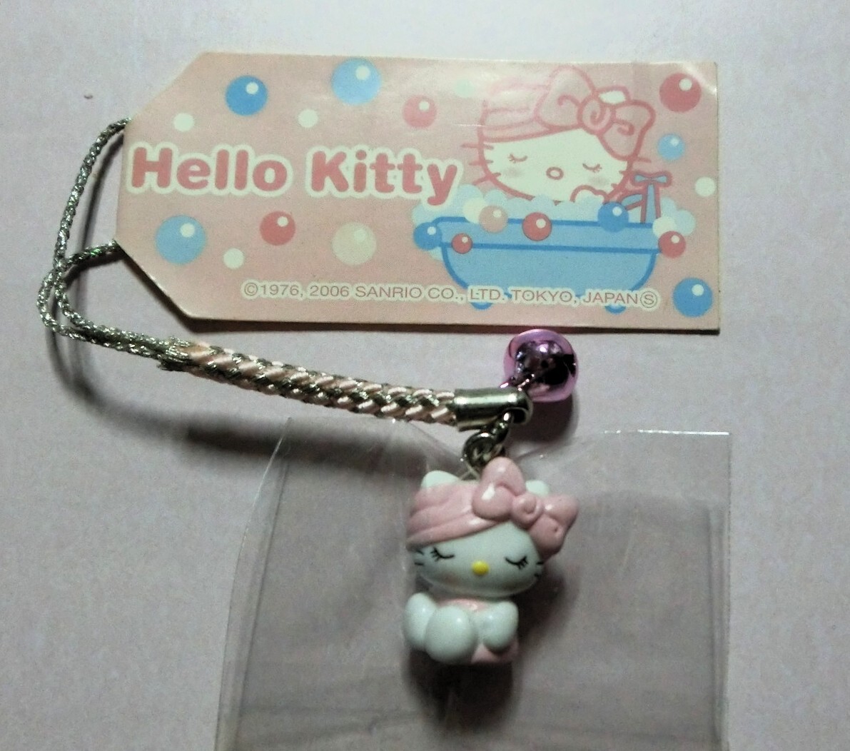 レア★お風呂バスタイム★ハローキティストラップ★根付・おすわり