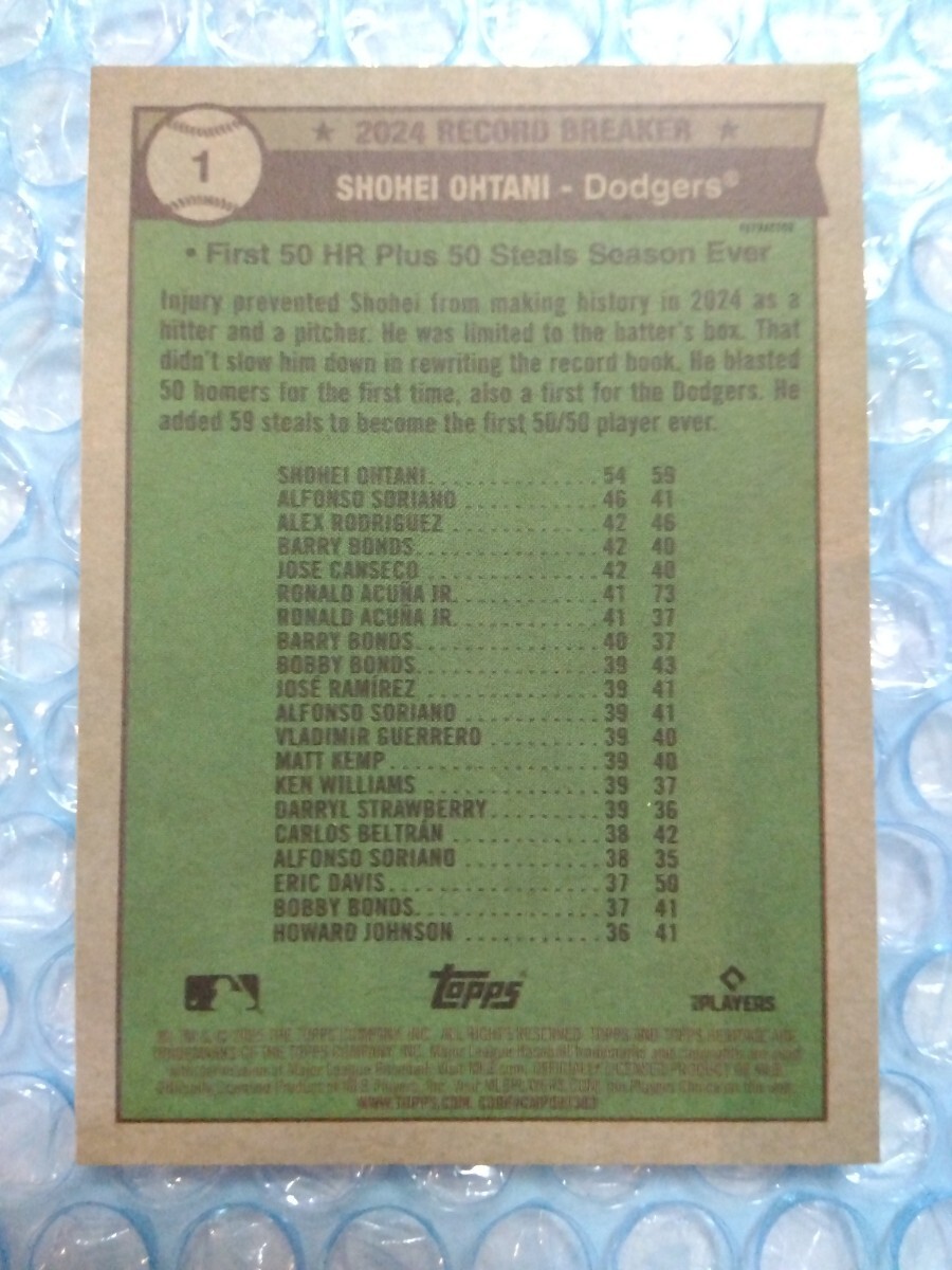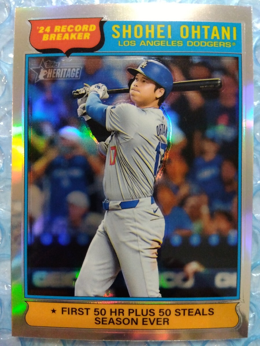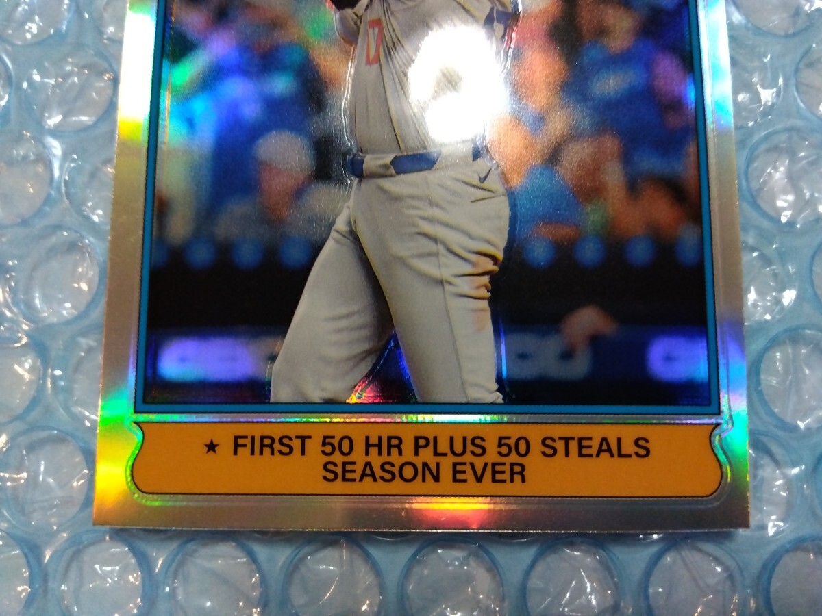 大谷翔平選手が2024年に50/50を達成したことを記念して、2025年に発行されたカードのクロームリフラクターバリエーションです。