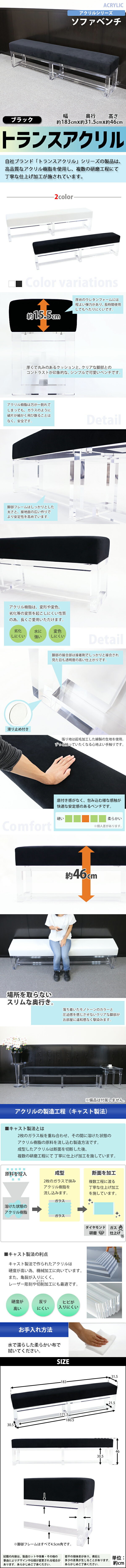 | 商品名 | 送料無料 アクリル ソファベンチ ソファ ベンチ sofa ブラック クリア 無色透明 インテリア 家具 アクリル樹脂 長椅子 リビング ダイニング シンプル おしゃれ スタイリッシュ 2人掛け 3人掛け スリム 背もたれなし アームレス カフェ 待合室 ソファー 黒 acbench136bk |