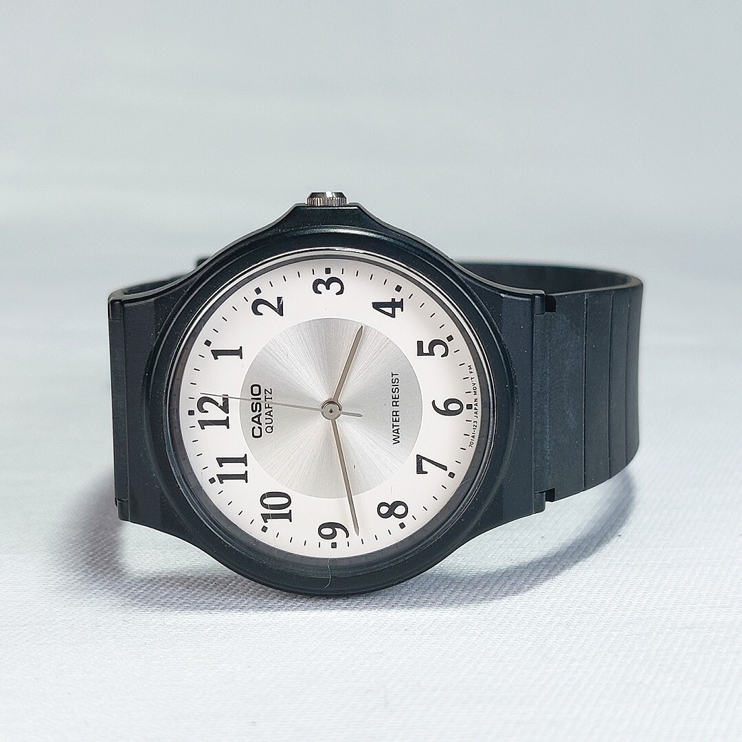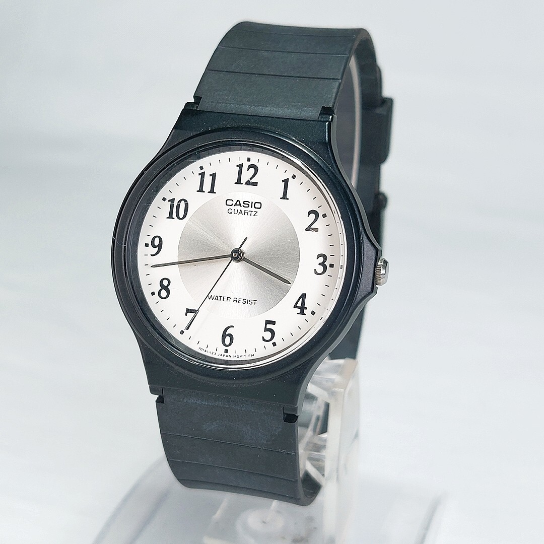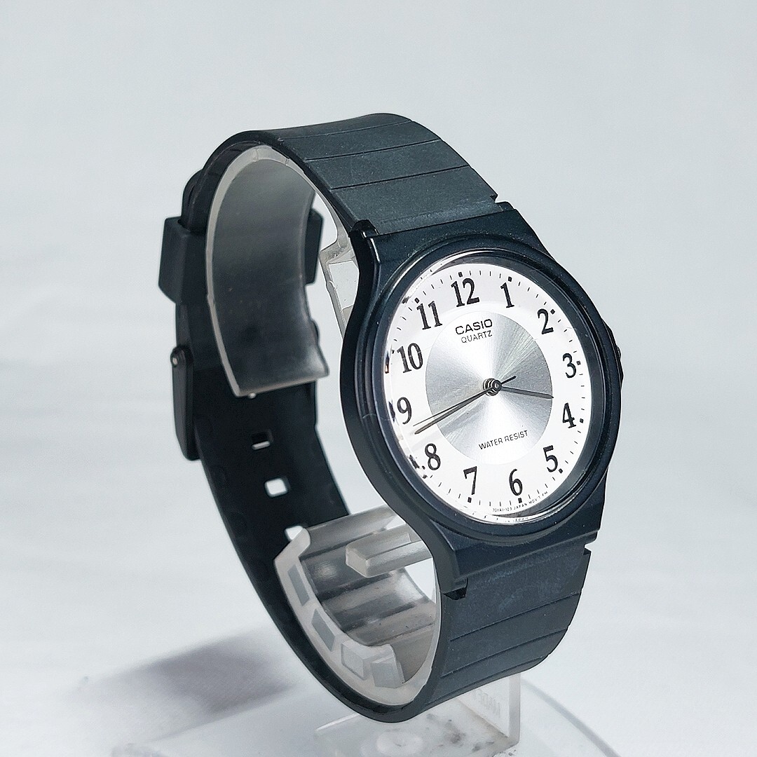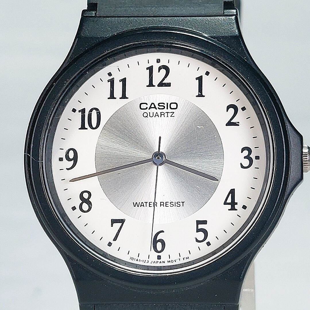 美品 CASIO カシオ MQ-24-7B3 アナログ クォーツ 腕時計 ホワイト文字盤 ブラック ラバーベルト ステンレス 新品電池交換済み 動作確認済み