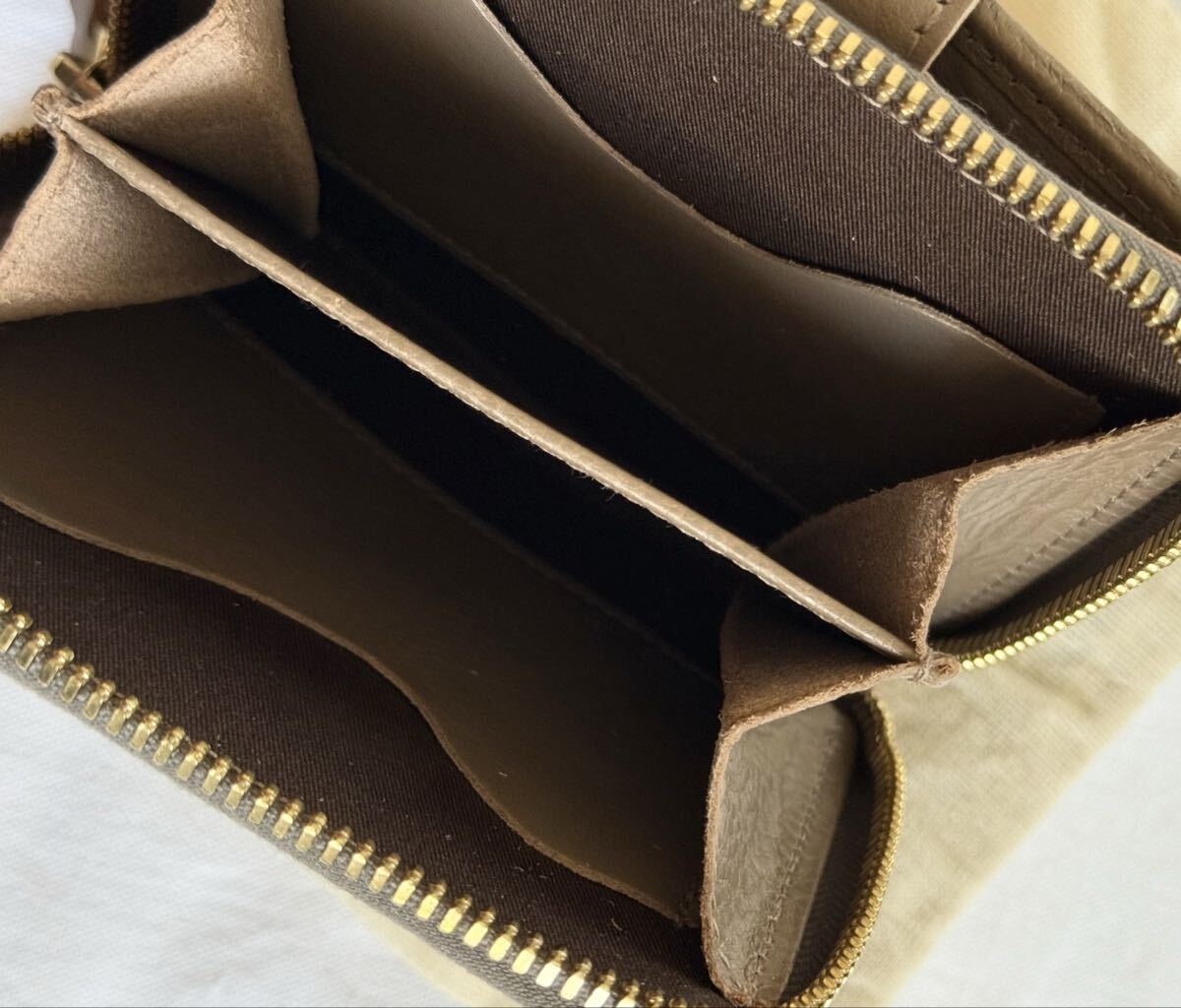 ラウンドジップ開閉のコインポケット内にも2つのカードポケットがついて、ショップカード等を入れるのに便利です。