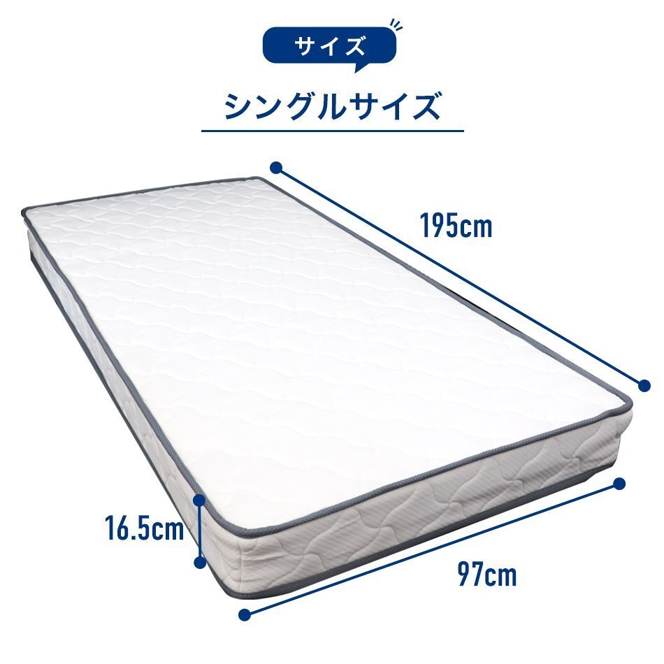 | 高密度30Dのウレタン! 厚みたっぷり16.5cm! 多重構造で硬すぎず、やわらか過ぎない安定感とクッション性で身体をしっかり支えるマットレスです。 ボンネルコイルは通気性抜群! 身体を面で支え、体にかかる負荷を分散させるので、肩や腰の沈み込みを防ぎ、安定感のある寝心地です。 高密度30Dのウレタンを使用しているので、へたりにくく、長時間寝ている間もしっかり支えます。 また、真空圧縮梱包したコンパクトな状態でお届けします。 ■商品コード:FEI001WH ■商品仕様 シングル サイズ:(約)幅97cm×長さ195cm×厚み16.5cm コイル数:341個 線径:2.2mm 巻数:5巻 素材:ボンネルコイル、高密度ウレタン(密度30D)、ハードフェルト、パイル生地 他 ■注意事項 ・圧縮梱包されたままの状態で長期間保管した場合、マットレスが復元できなくなってしまいます。 商品到着後、すぐ圧縮から開放をして頂くようにお願いいたします。 ・マットレスは約1~2日で復元します。気温や温度により3~14日かかる場合もあります。 ・製品の臭いが気になりましたら、風通しの良いところで脱臭してください。 この臭いは素材のウレタンによるもので無害です。臭いに敏感な方は十分ご検討の上ご購入をお願いいたします。 ・マットの硬さは温度によって変わってきます。また、硬さの感じ方には個人差があります。 ・生産ロットによって復元率・ニュートンに差異が生じる場合があります。 ・商品は、モニターによって色合いが異なって見える場合があります。 ・仕様・デザインは改良のため予告なく変更することがあります。 ■保障期間 7日間 ※商品到着後7日以内の初期不良・破損のみご対応させていただきます。 【新品未使用品です】 |
