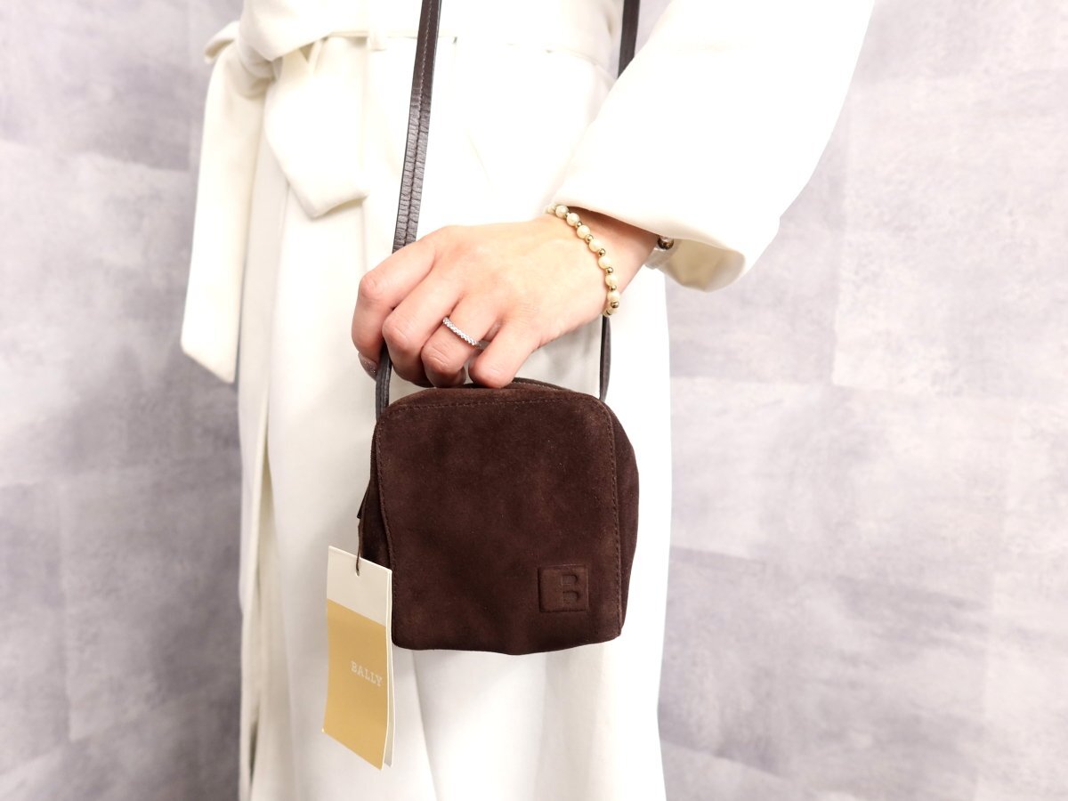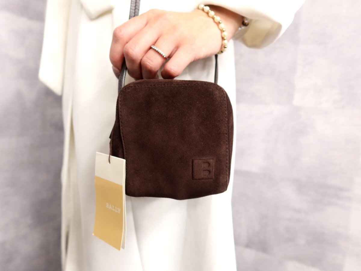 ●超美品●BALLY バリー●スエード カーフ レザー 本革●ミニ ショルダー バッグ●ブラウン●シルバー金具●斜め掛け●かばん●Js62449