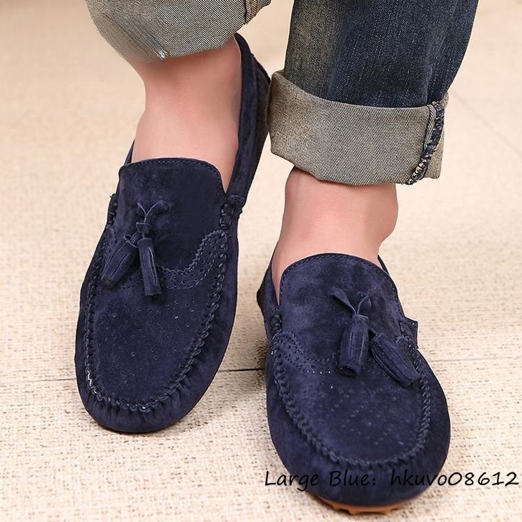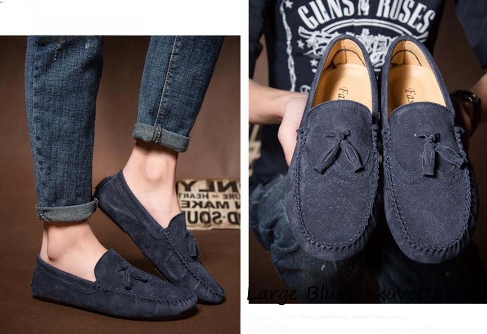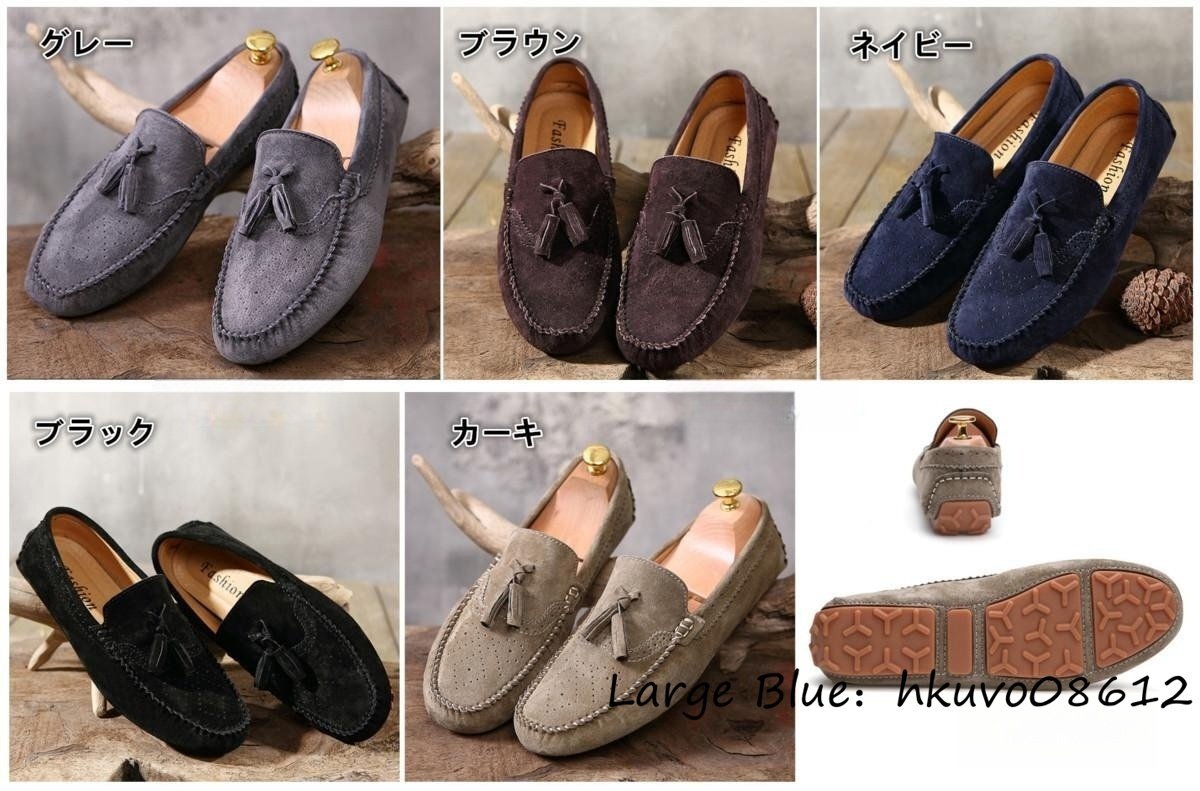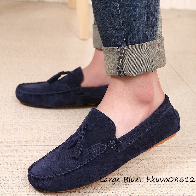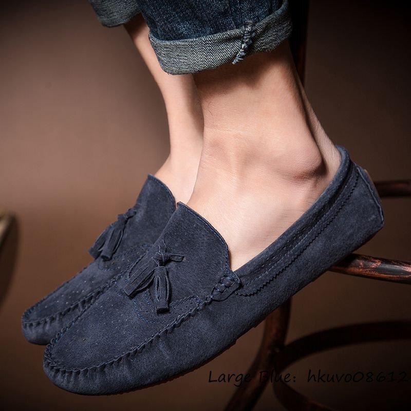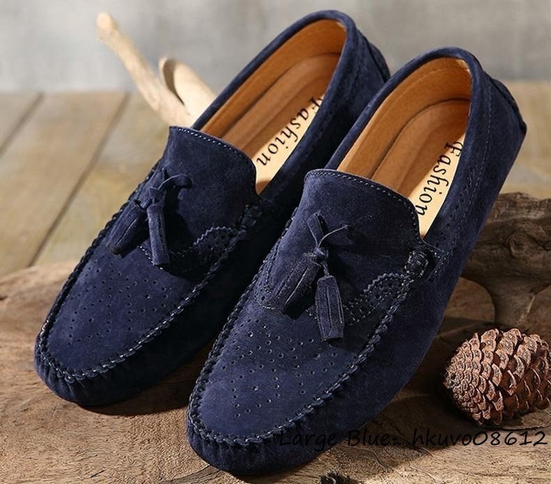 新品■ローファー スリッポン メンズ 春夏秋 ドライビングシューズ スエード革 BROGUE タッセル 通気性 牛革 紳士靴 五色 ネイビー 24.5cm