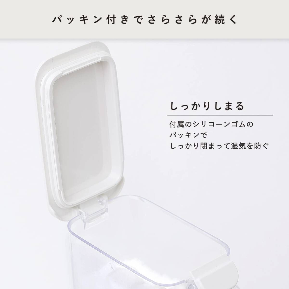 ・【便利な小さじスプーン付き】小さじ1(5ml)スプーンと、すり切り板付きで簡単に計量ができます。すり切り板にスプーンを立て掛けられるので、スプーンが調味料に埋もれず衛生的。パッキンとすり切り板は分解して洗えます。