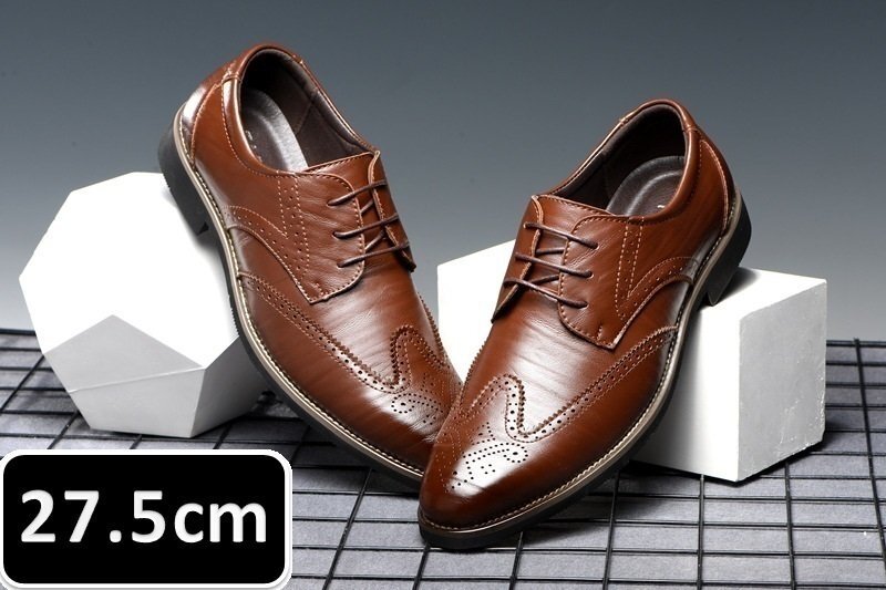 メンズ ビジネス レザー シューズ ブラウン サイズ 27.5cm 革靴 靴 カジュアル 屈曲性 通勤 軽量 柔らかい 新品 【230】