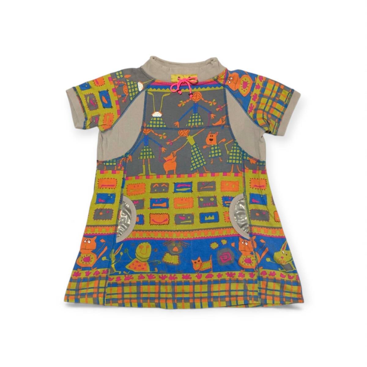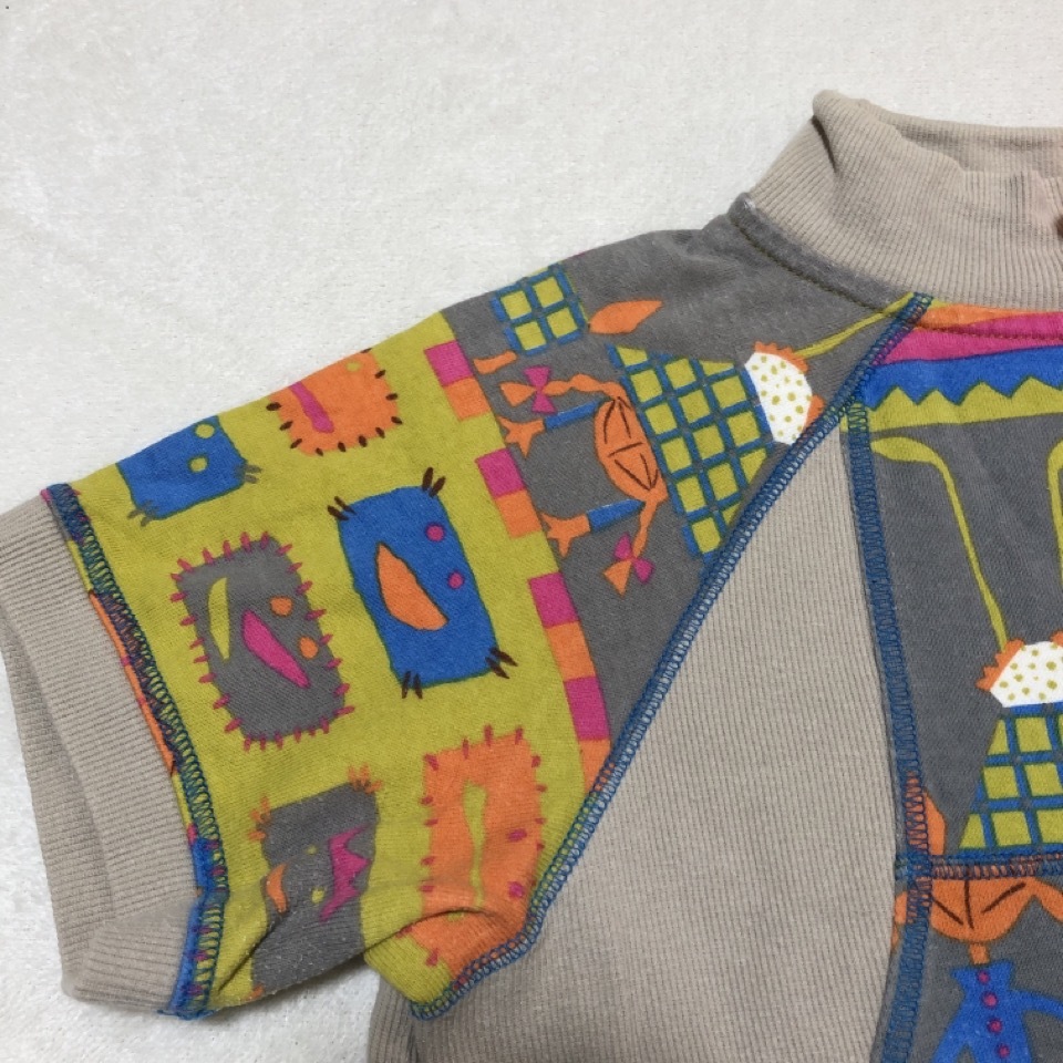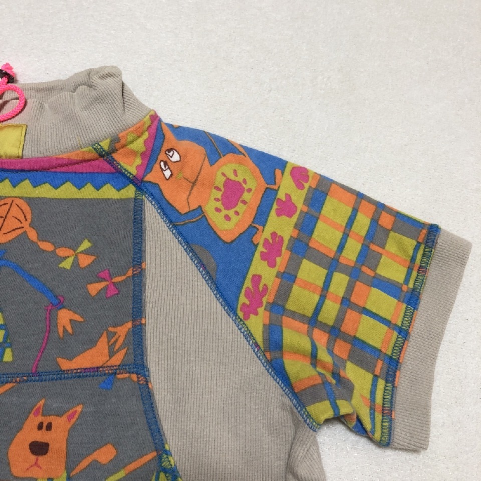 1円~ 60 A-8-87 Olleborebla アルベロベロ 半袖 スウェット チュニック 総柄 モックネック ハイネック マルチカラー サイズF