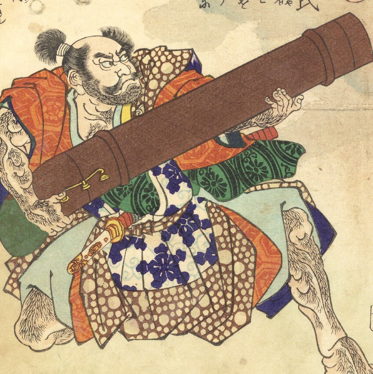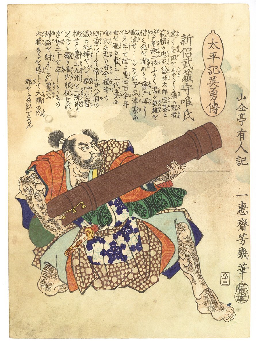 真作◆新納忠元【83】 芳幾 島津家家臣 大砲 「太平記英雄傳 新侶武蔵守唯氏 八十三」本物浮世絵版画 中判錦絵 Ukiyoe Yoshiiku