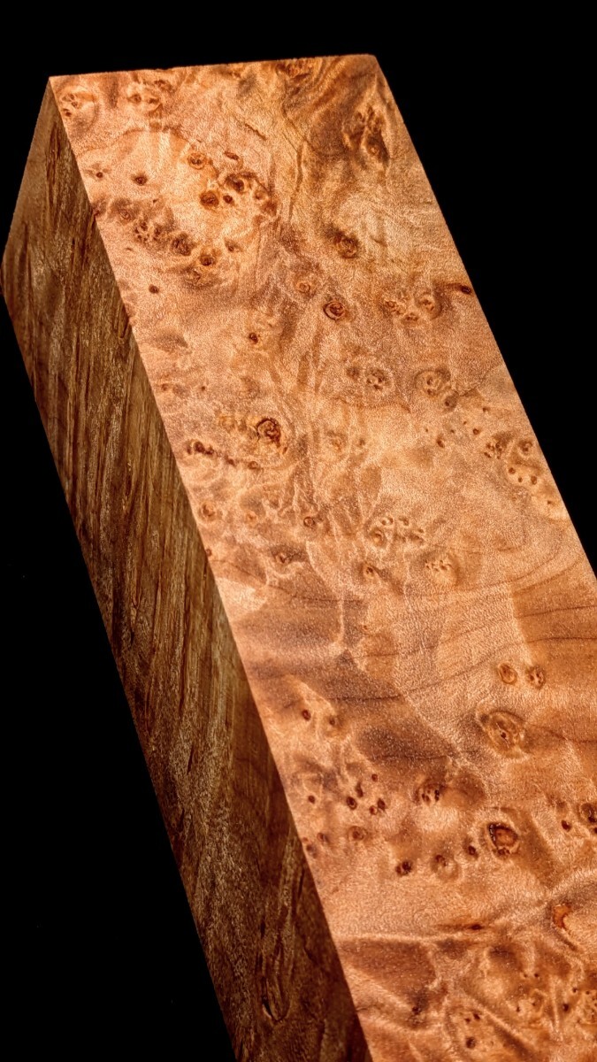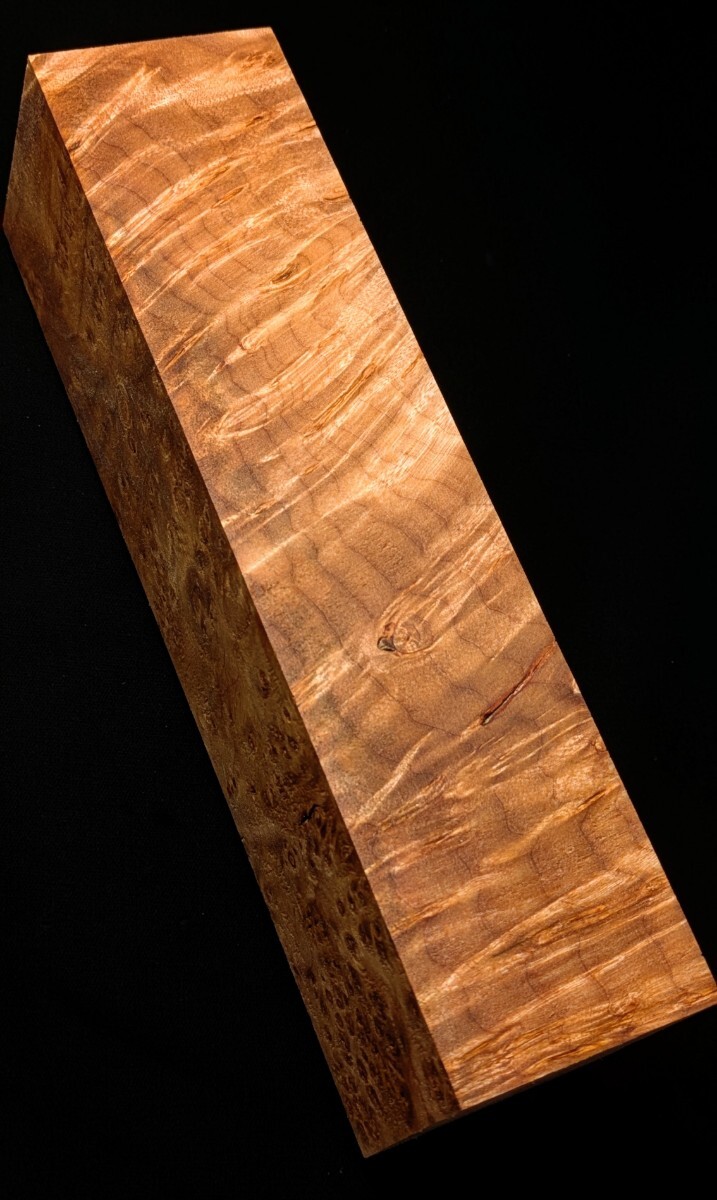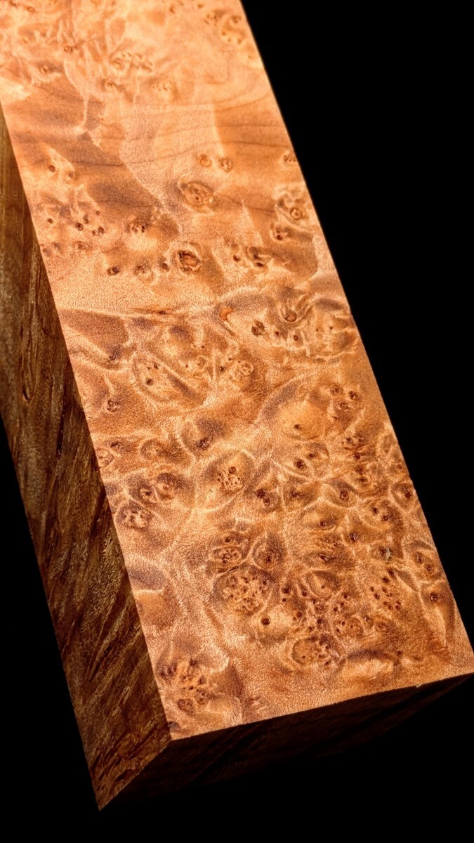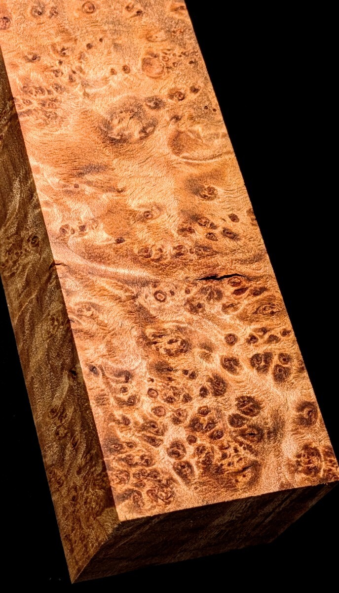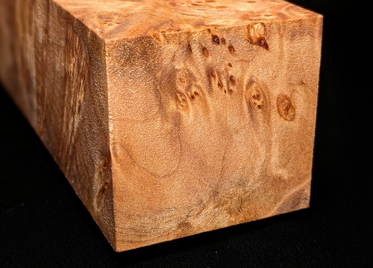 メープル瘤杢の角材を出品します。多少割れあります。ペンブランク、ハンドメイド品、クラフト品など小物制作にご使用下さい。