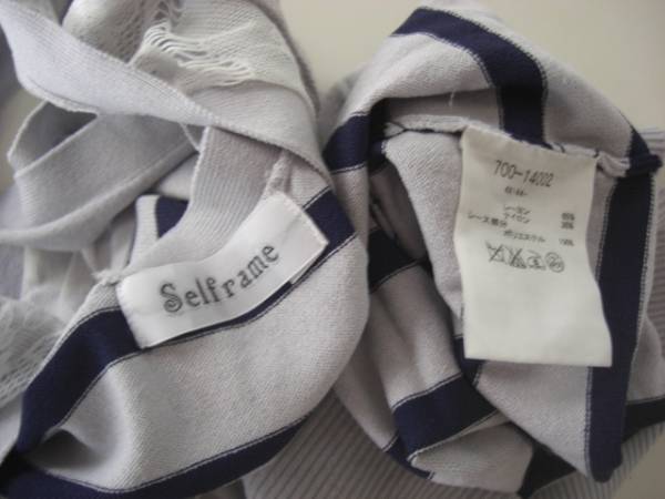 美品セルフレーム ボーダーレースニット グレイ