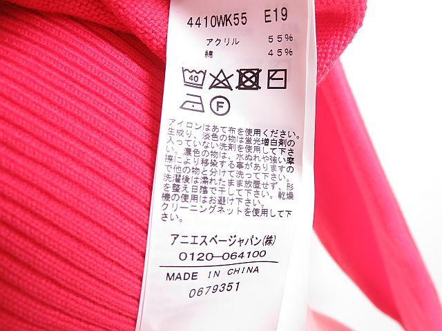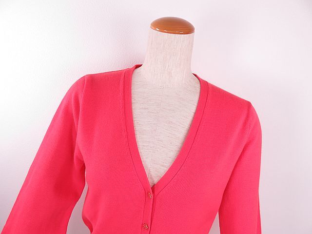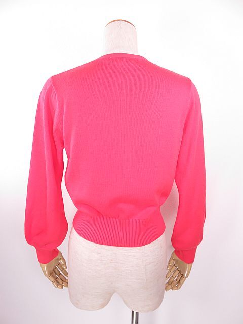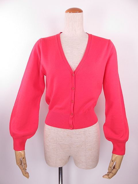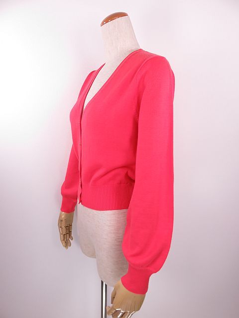 【送料無料】美品 アニエスベー agnes b. 長袖ニットカーディガン お花ボタン ピンクオレンジ M