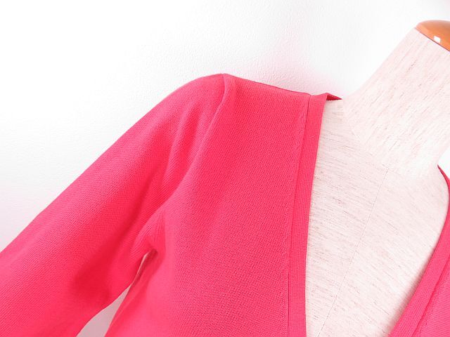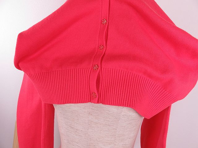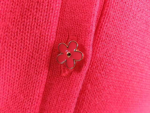 美品 アニエスベー 長袖ニットカーディガン お花ボタン ピンクオレンジ M