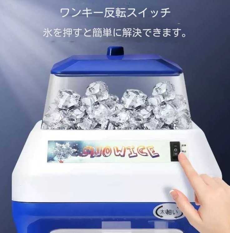 【調整可能な氷のテクスチャ】-ブレード調整ノブを備えているため、氷のテクスチャを簡単に調整して、さまざまな冷凍のおやつを作成できます。機械の運転中は、氷のサイズを厚いものから薄いものにしか調整できません。そうしないと、氷がまったく出てこない場合があります。薄いものから厚いものへの調整は、詰まった氷を浚渫するのに役立ちます。