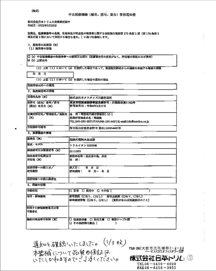 2024年製 高年式 日本トリム トリムイオン リファイン 電解水素水 電解水 整水器 浄水器 カートリッジ残 2メモリ TRIM ION 【保証なし】