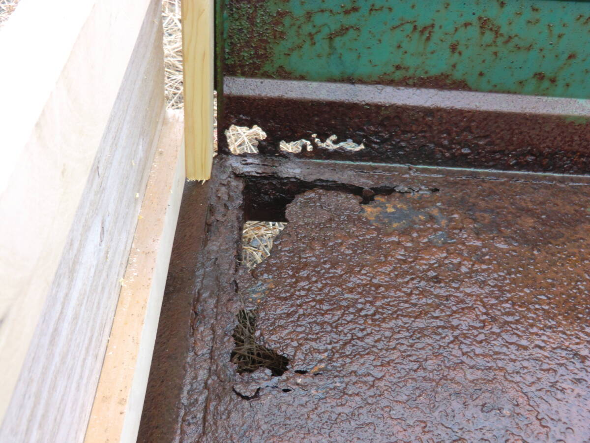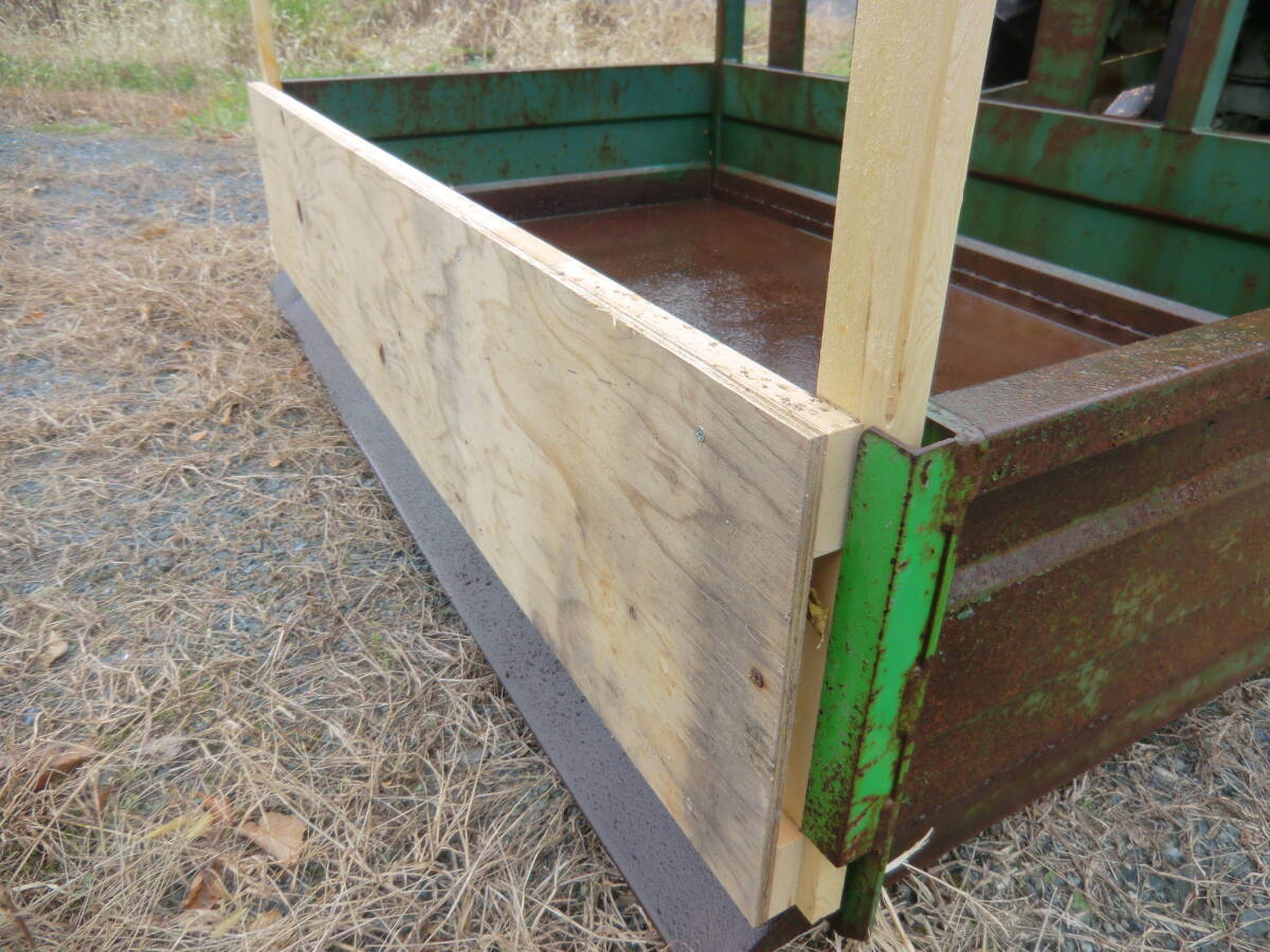 内寸 : 約1550×900×300mm 付属品: なし 開閉動作スムーズです! 大きな変形もありませんが 底面と横に一部サビ穴があります。 コンパネ敷きで若干解消されます。 最後部の板は取り外し可能です。 現状で入札ご検討ください。 画像のものがすべてです。 中古現状・未整備での出品となります。 他に見落としている不具合点あるかもしれません。 現状渡しとなります。全てをご理解の上 引き渡し後はノークレーム・ノーリターンを同意の上 入札をご検討下さいませ。 |