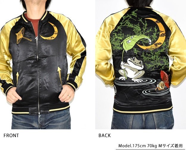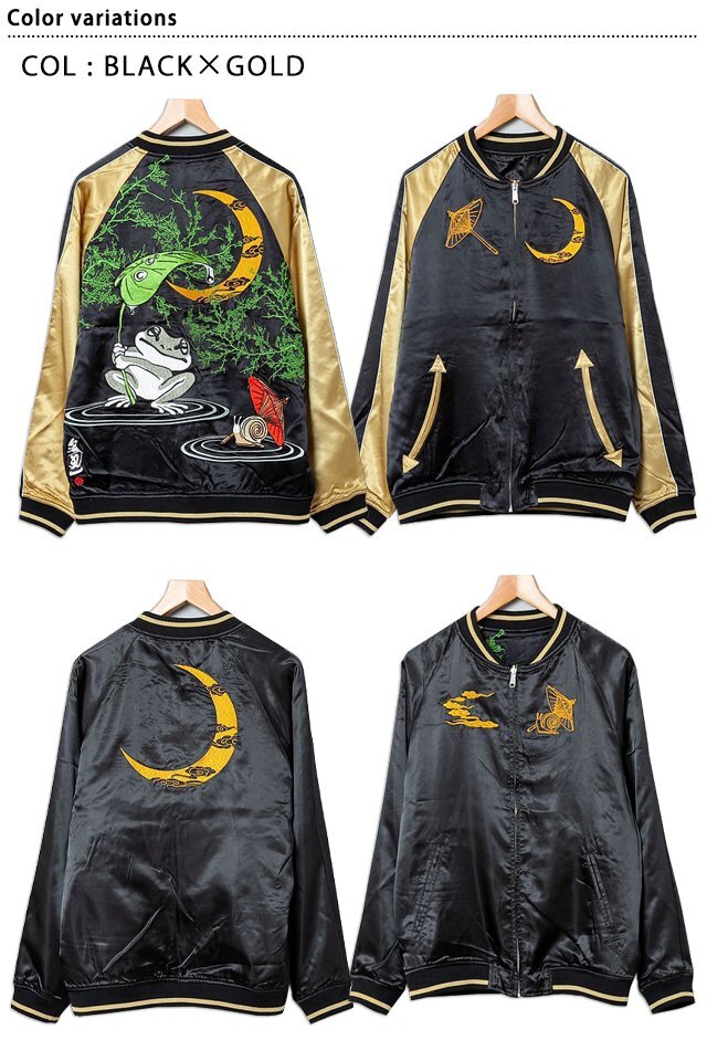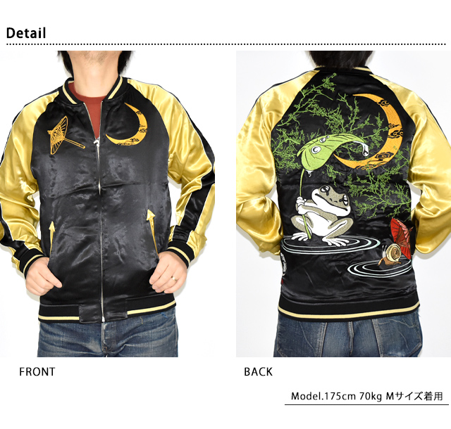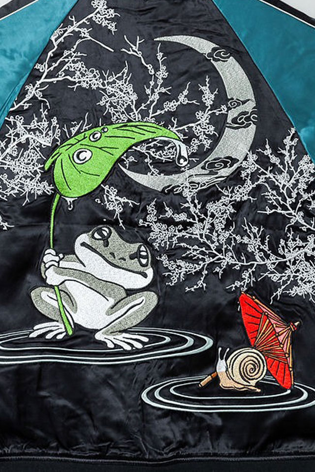 「参丸一」さんから「雨宿り」総刺繍リバーシブルスカジャン(SM-30627)のご紹介です。 カタツムリと一緒に雨宿り。 いつも仲良しな2匹は雨も大好き。 大きい葉っぱを持つ蛙が愛くるしい一着です。 また、今回のスカジャンはリバーシブルになっています。 ボディーにはレーヨンサテンを採用。 1枚持っているだけでずっと使えるアイテムです。 | ||||||||||||||||||||