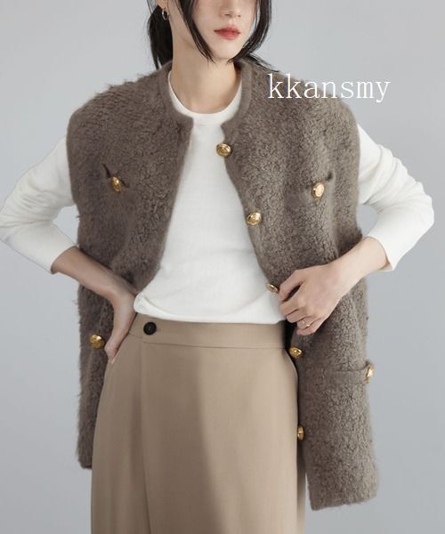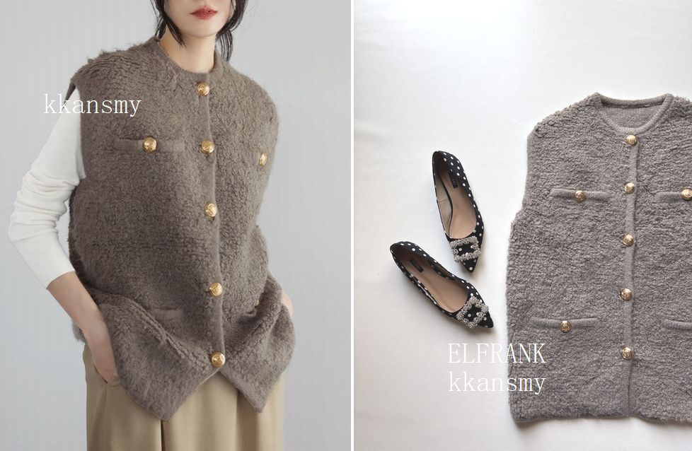 2024ELFRANKエルフランク*ループ編みニットジレ/ベストです。