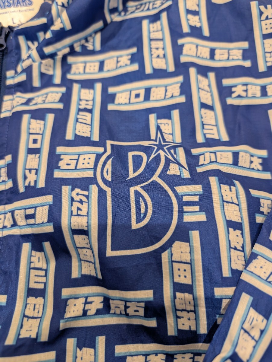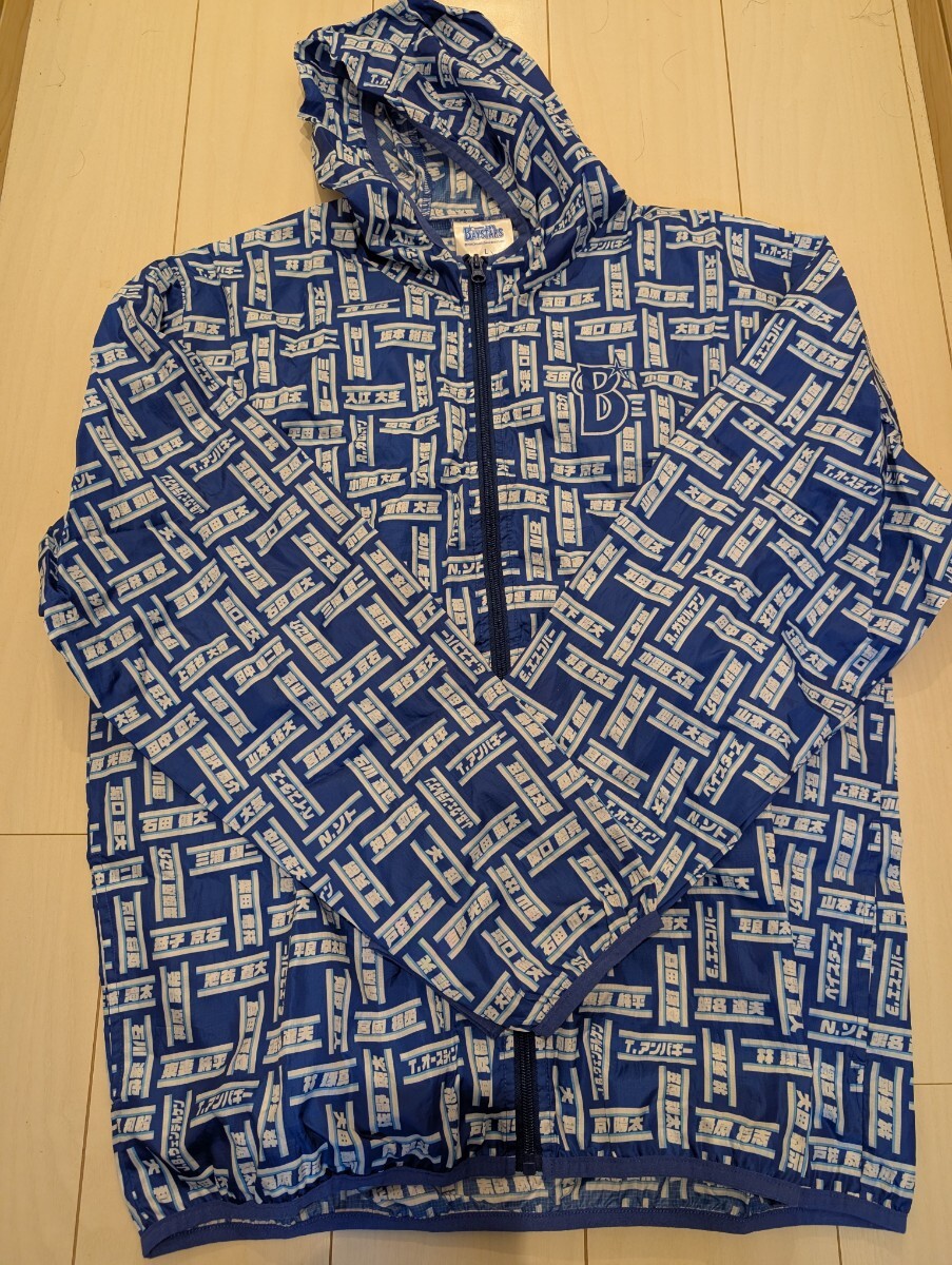 横浜DeNAベイスターズのフード付き総柄ウィンドブレーカーです。