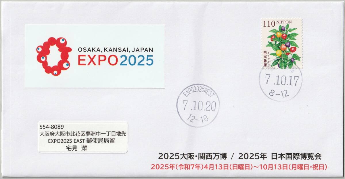 千葉県内から令和7年10月17日午前中に「EXPO2025 EAST局」へ向けて普通郵便を差出