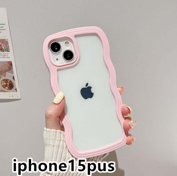 iphone15plusケース カーバー TPU 可愛い 波型 お洒落 軽量 ケース 耐衝撃高品質ピンク
