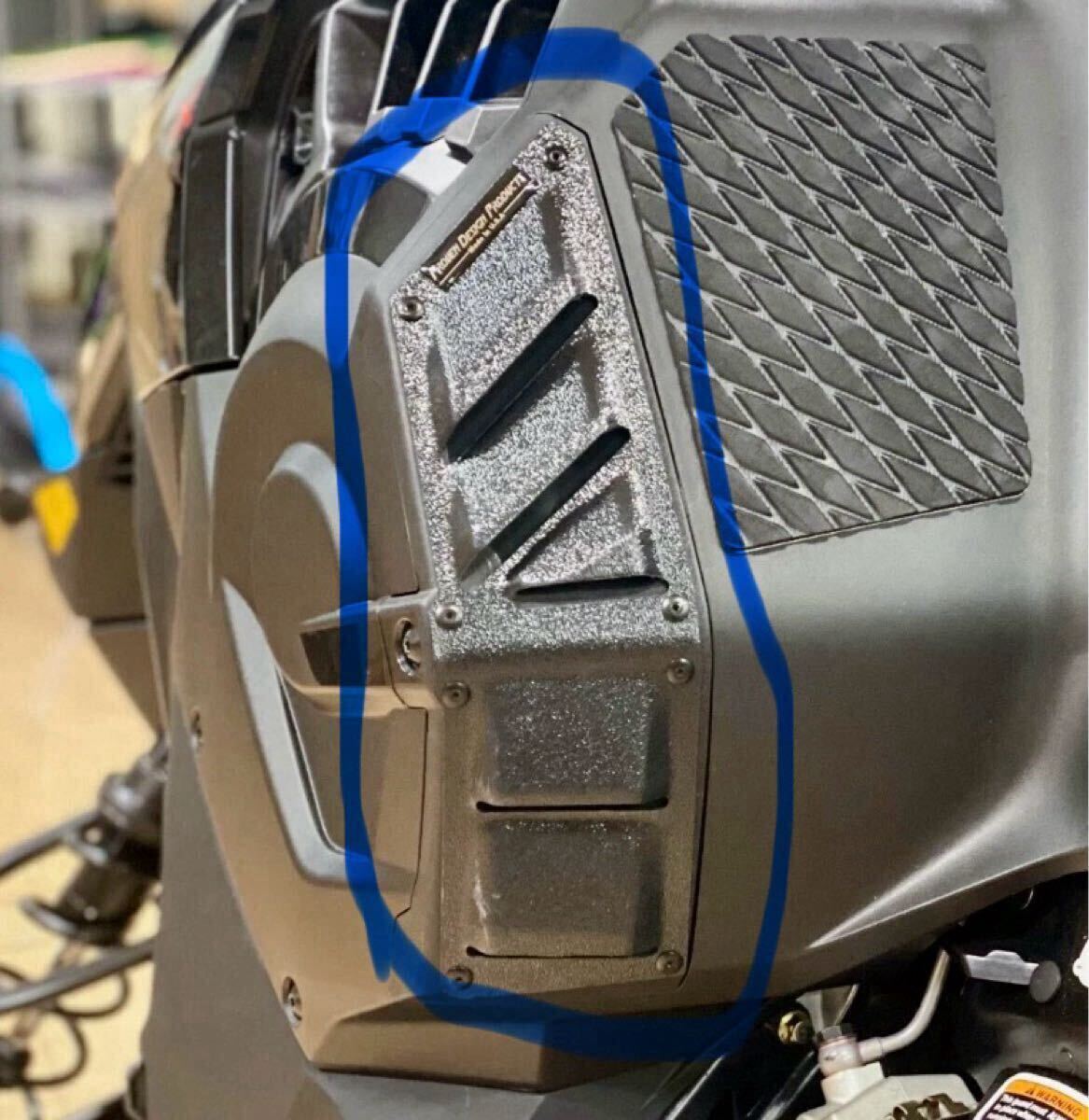 車体左側のクラッチベントの上から取り付けるプロテクターです!