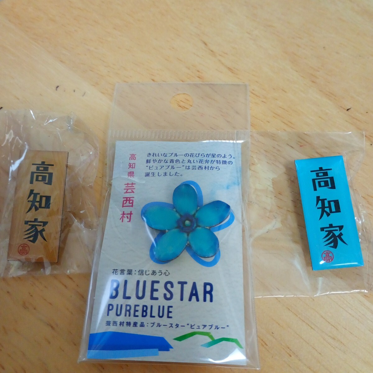 高知家と芸西村のピンバッチ3個です。