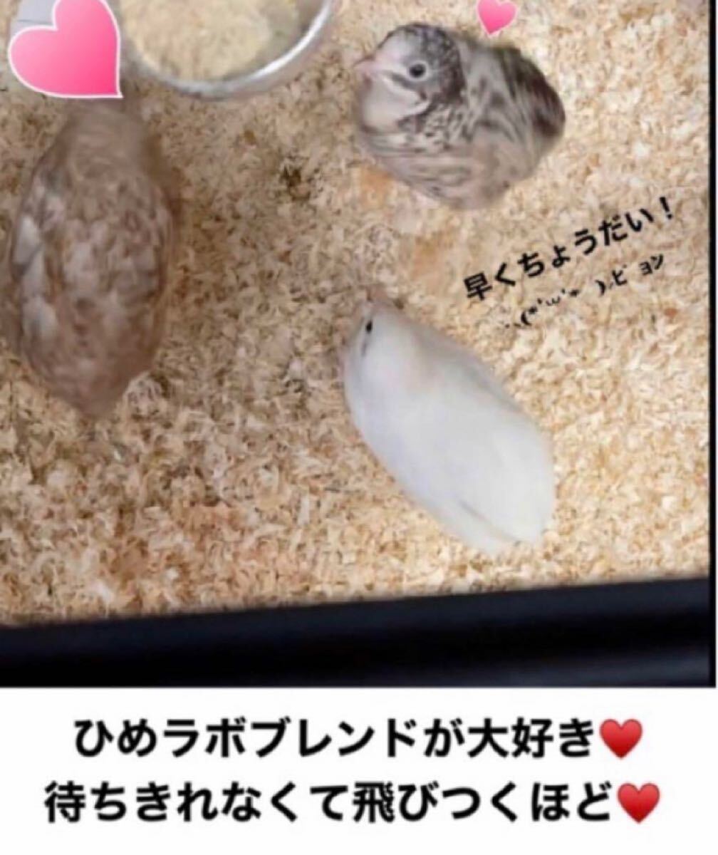 この餌を作る前はヒメウズラの餌に悩んでいました。