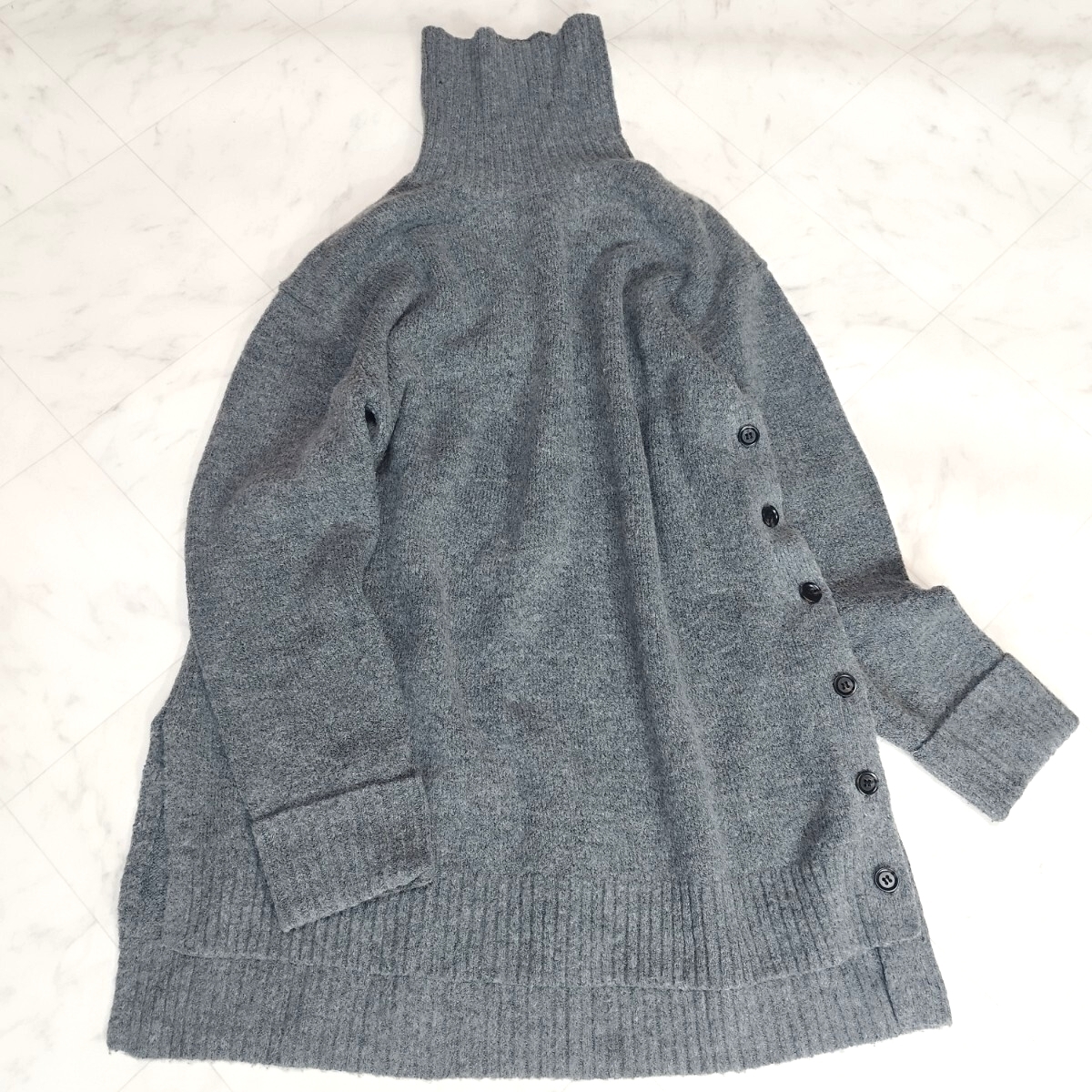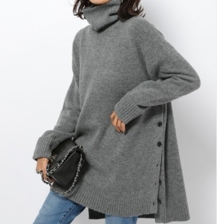 BARNYARDSTORM「5Gブークレタートルチュニック」は、ゆったりとした着丈でお尻が隠れるボリュームタートルニット。サイドのボタンがスリットになり、開けて軽やかに着こなしたり、閉じてすっきりとまとめたりと、幅広いスタイリングが楽しめます。