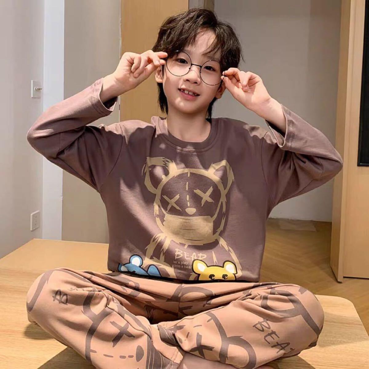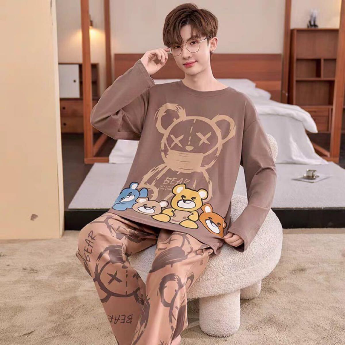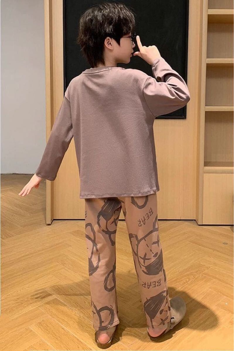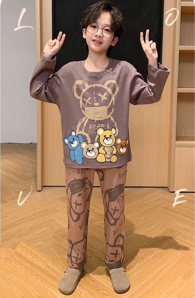 キャラクターデザインが可愛い長袖パジャマ上下セットです。柔らかい綿風素材で肌触りも良く、部屋着やパジャマにぴったりです♪