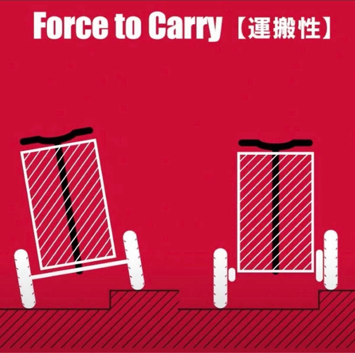 前輪は特殊なサスペンションを搭載していて、重い荷物やデリケートな荷物を積んで段差のある場所を乗り上げたり、車道から歩道に乗り上げたりするのも楽々。