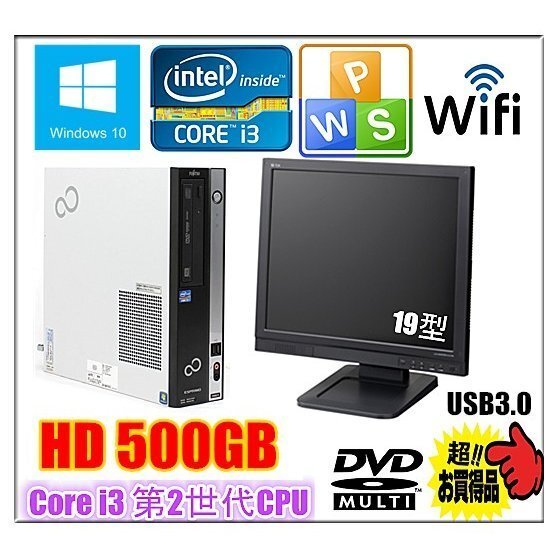 | 付属品 | 電源ケーブル正規版WPSオフィス(旧KINGSOFT office) シリアルカード 外付けUSBタイプ無線アダプタ(新品未使用)中古キーボード&マウス(在庫優先)19型液晶モニター(在庫優先)(写真はイメージとなります。) |