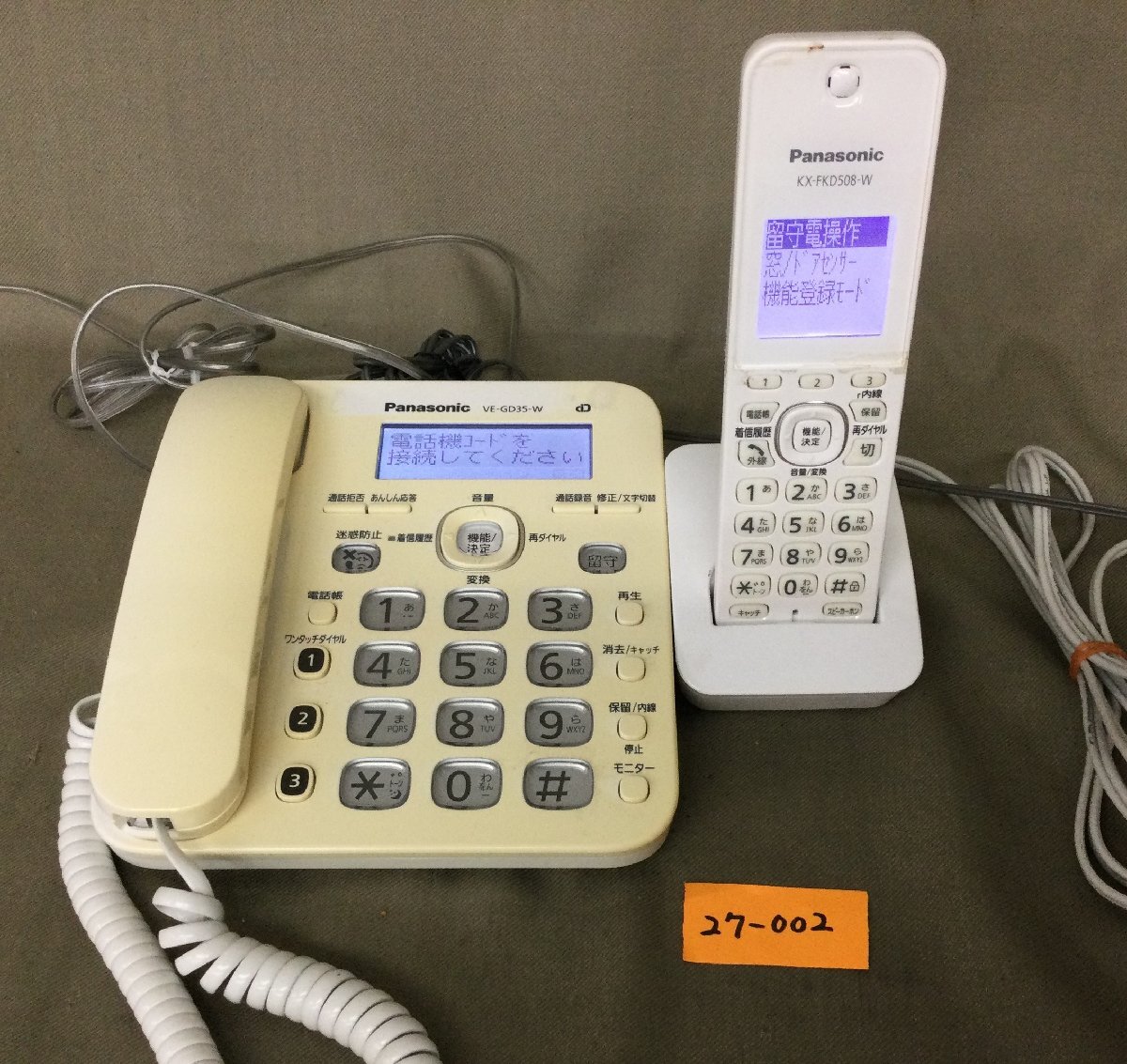 ●★27―002★電話機 パナソニック 親機 VE-GD35 子機 KX-FKD508-W 通電のみ確認 初期化済み/留守電 迷惑電話対策機能 コードレス[80]