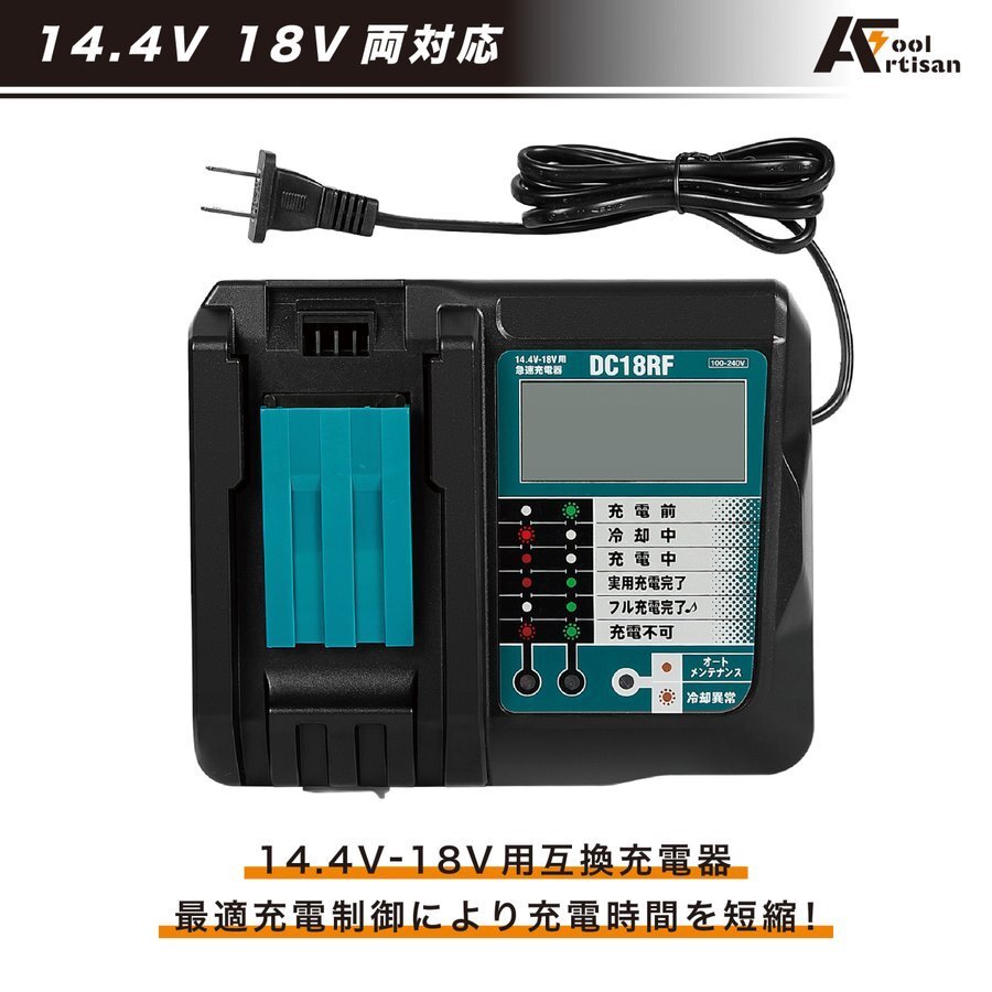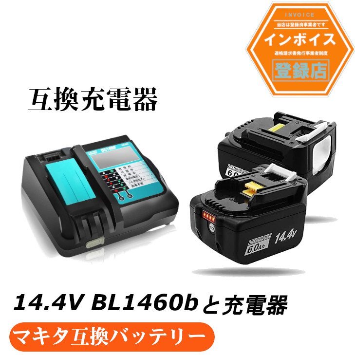 3点セットマキタ互換バッテリー 14.4v AP BL1460b 互換バッテリー 14.4V 6.0Ah 2個セット + DC18RF 3.5A(液晶あり)充電器セット