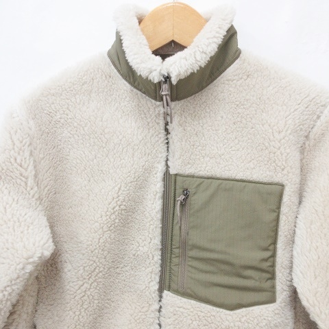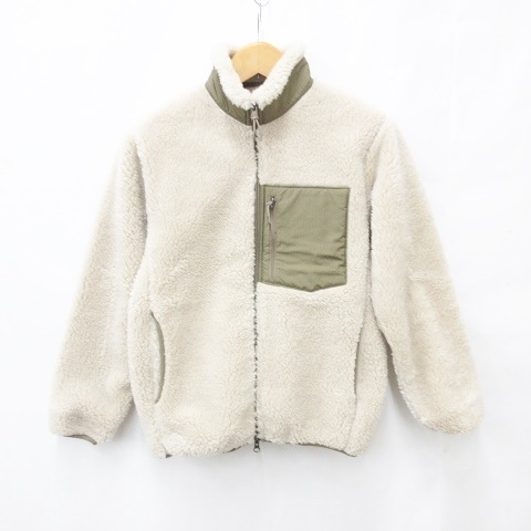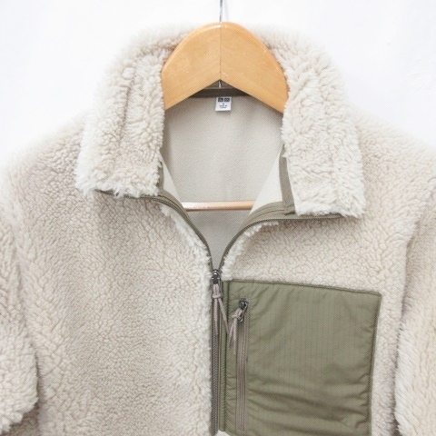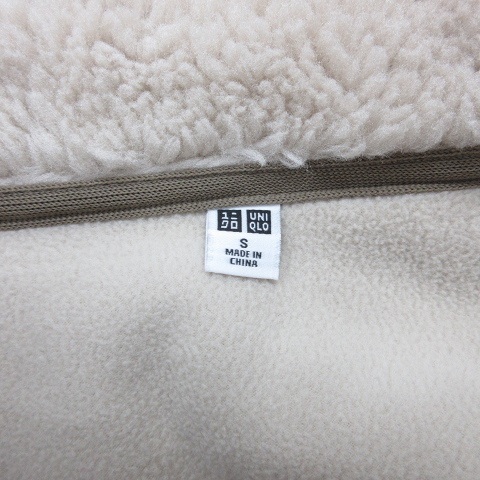 ユニクロ UNIQLO ジャケット ジャンバー ボア ジップアップ スタンドカラー 別布 テープ ベージュ 茶 ブラウン S メンズ