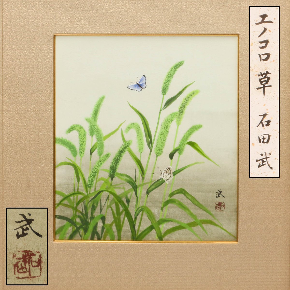 【SAG】石田武 『エノコロ草』肉筆 色紙 額装 本物保証
