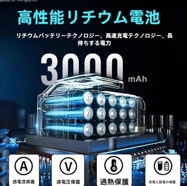 【大容量2000mAh/個バッテリー&コードレス】充電式ブロワーは2000mAh大容量バッテリーが2個付属しています。より長い使用時間を実現します。予備バッテリーがあるので、電池が切れたら充電待ちの悩みが解消されます。バッテリー給電、コードレスの充電式なので、持ち運びやすくて、場所を選らずどこでもご利用できます。